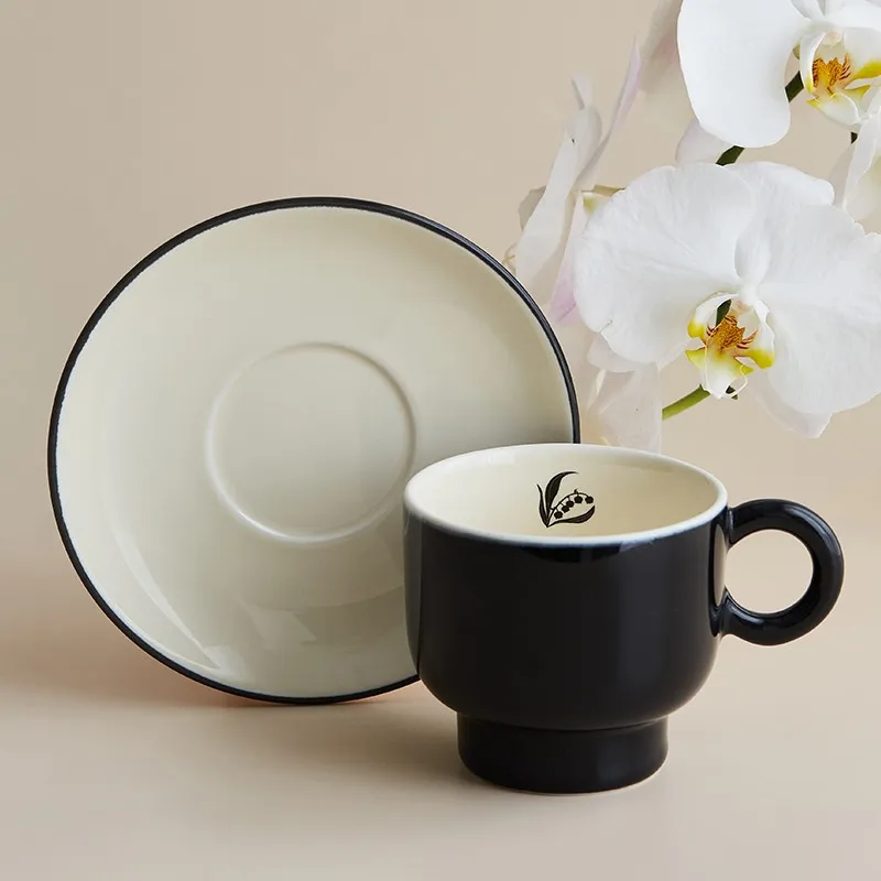 The Lily of The Valley Ceramic Coffee Cup and Saucer combines the elegance of retro style with a bold solid black color and a unique floral design. This beautifully crafted cup and saucer set is designed to elevate your coffee or tea-drinking experience, offering a sophisticated and timeless aesthetic. The Lily of the Valley flower, delicately depicted on the surface, adds a touch of nature’s charm, while the retro solid black color creates a striking contrast that brings modern flair to a classic design.Whether you're sipping your morning coffee, enjoying an afternoon tea, or presenting this set as a thoughtful gift, the Lily of The Valley Ceramic Coffee Cup and Saucer offers both style and functionality for every occasion. Its high-quality ceramic material and elegant design make it a must-have for those who appreciate fine tableware.