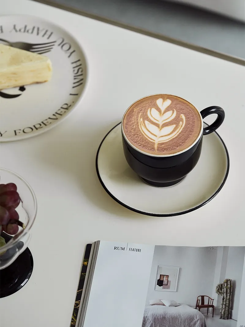 Crafted from high-quality ceramic, this coffee cup and saucer set is both durable and long-lasting. The ceramic material offers excellent heat retention, ensuring that your coffee, tea, or any hot beverage stays at the perfect temperature for longer periods. Ceramic is also naturally resistant to staining, making it easy to clean after each use while retaining its elegant finish over time.This set is built to withstand daily use, whether you're enjoying a cup of coffee in the morning or serving guests during special occasions.