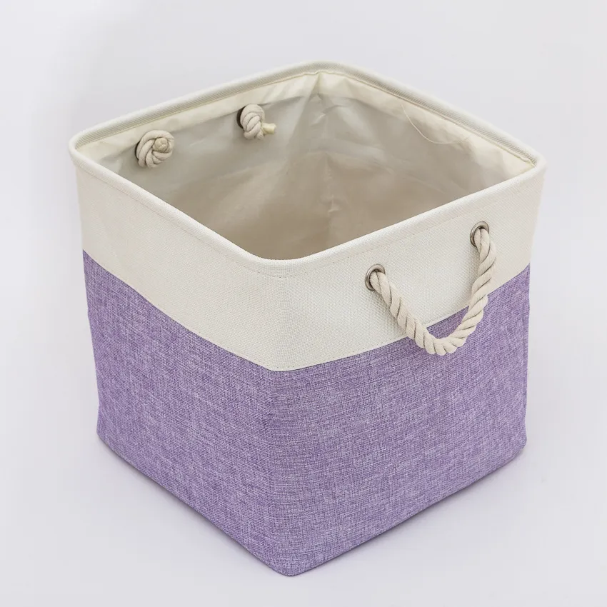 Linen Stitching Foldable Storage Box With Cotton Rope Handle Toy Storage Basket Daily Necessities Organizing Basket