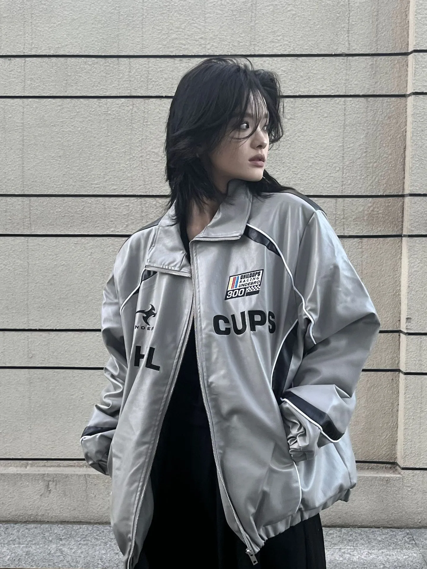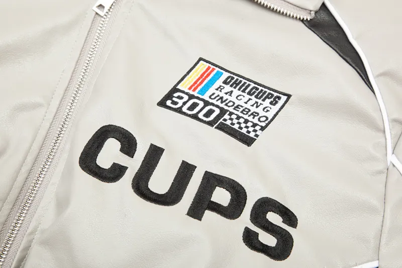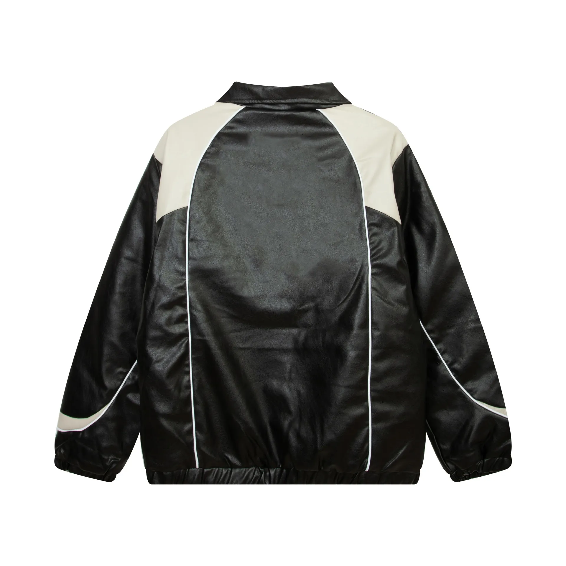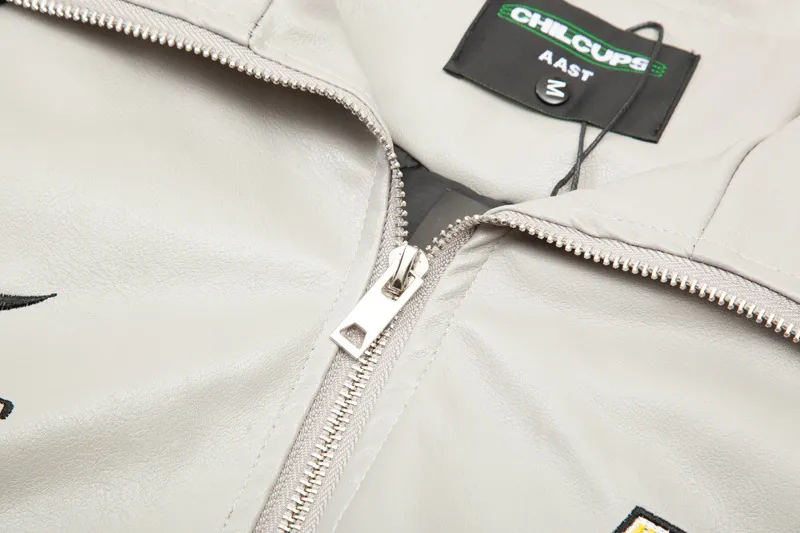 Loose American Couple Embroidered Motorcycle PU Jacket