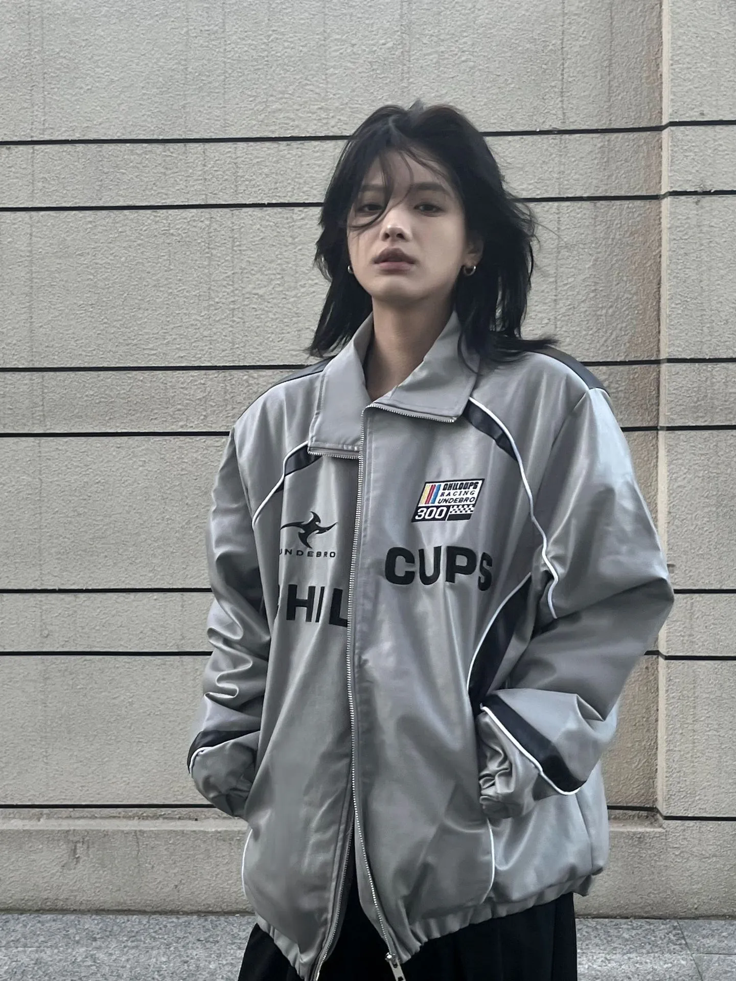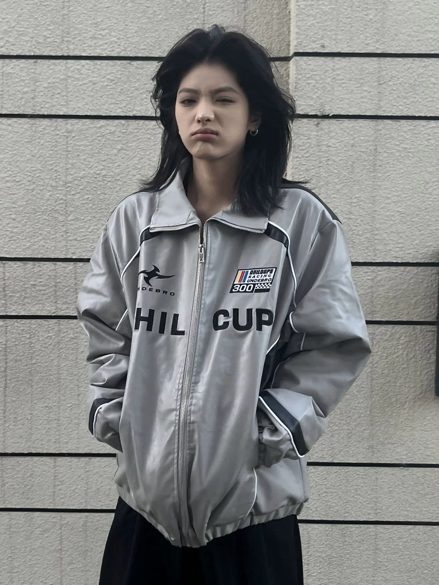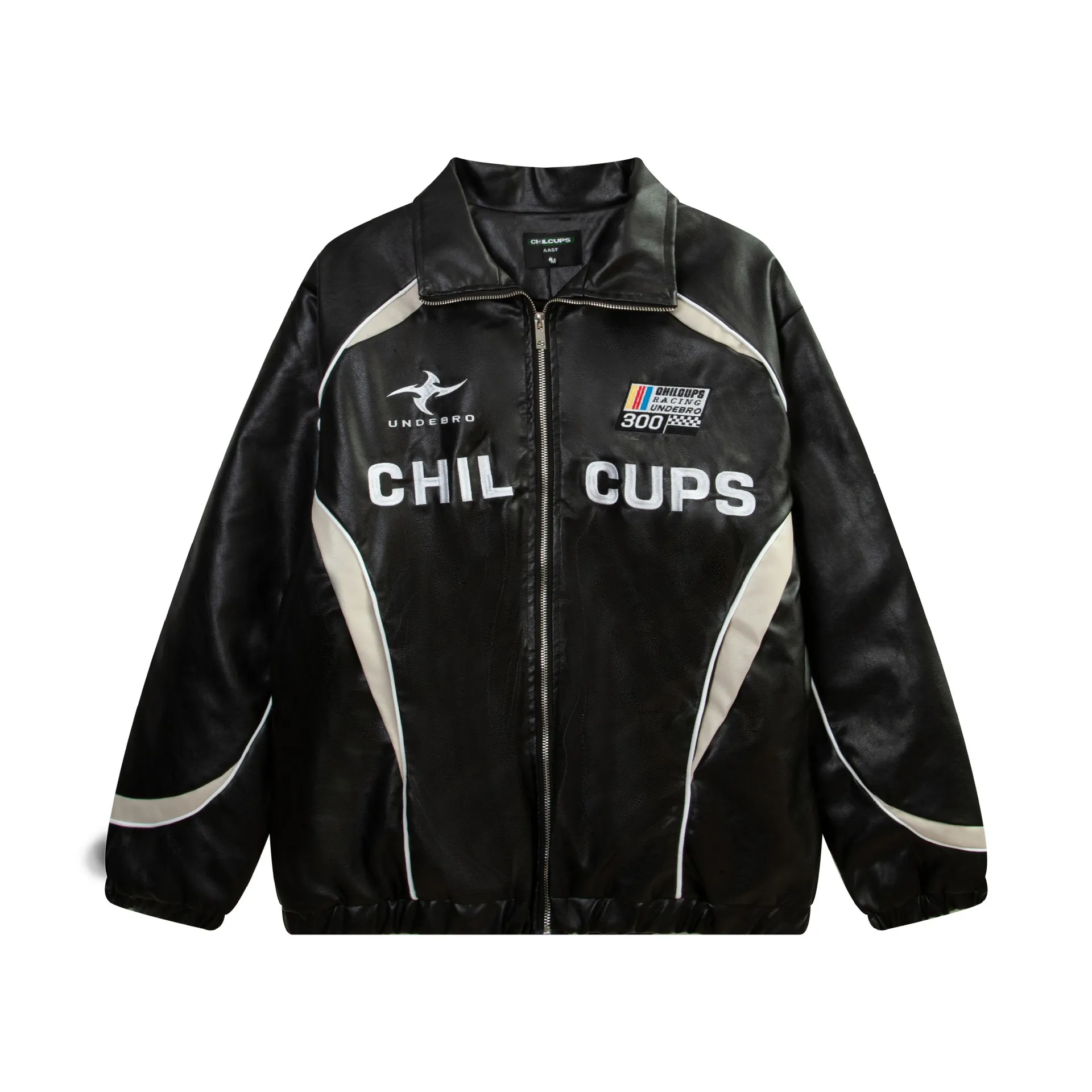 Loose American Couple Embroidered Motorcycle PU Jacket