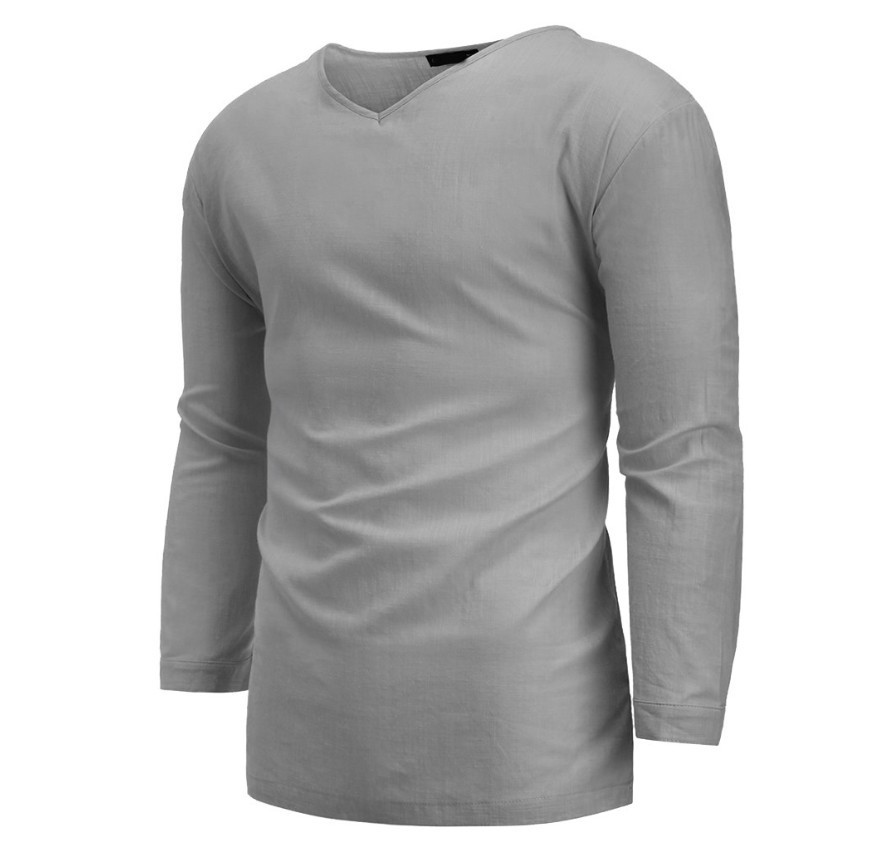 Loose Casual V-neck Top Cotton And Linen Long Sleeve