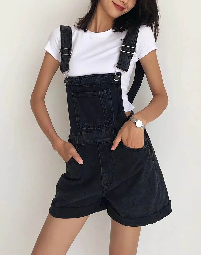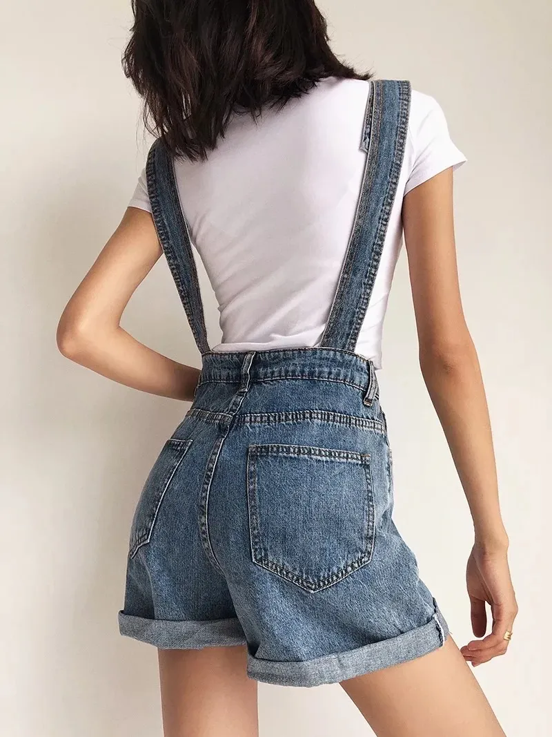 Loose-fitting Curl All-matching Jeans Suspender Pants
