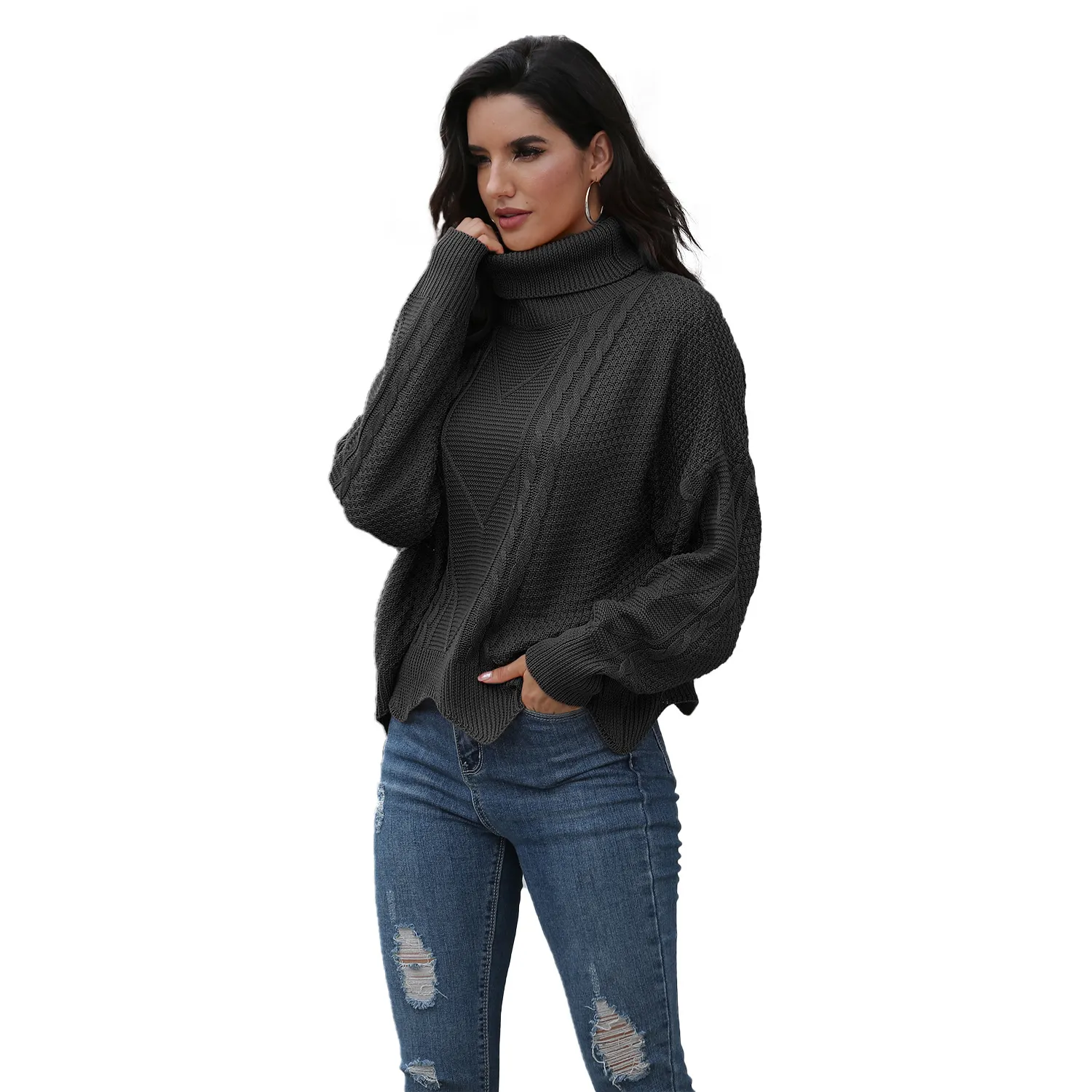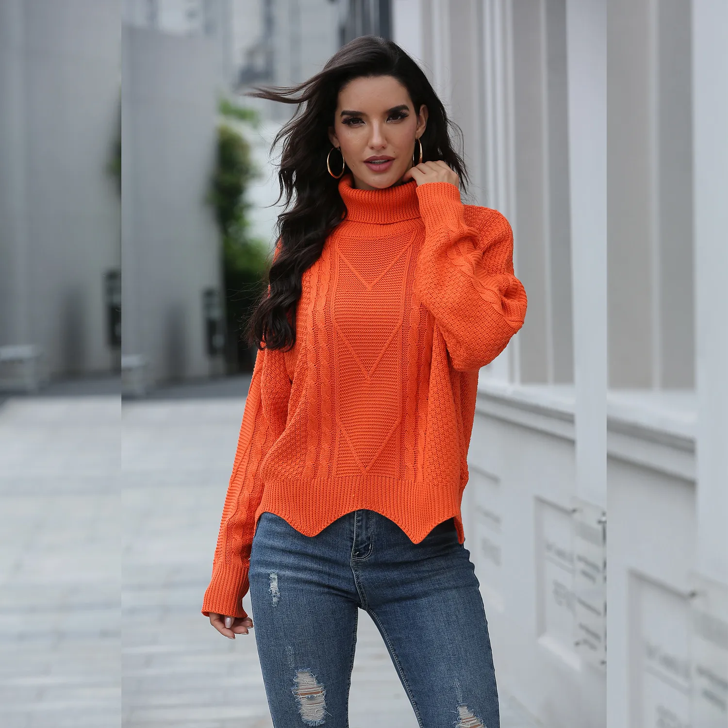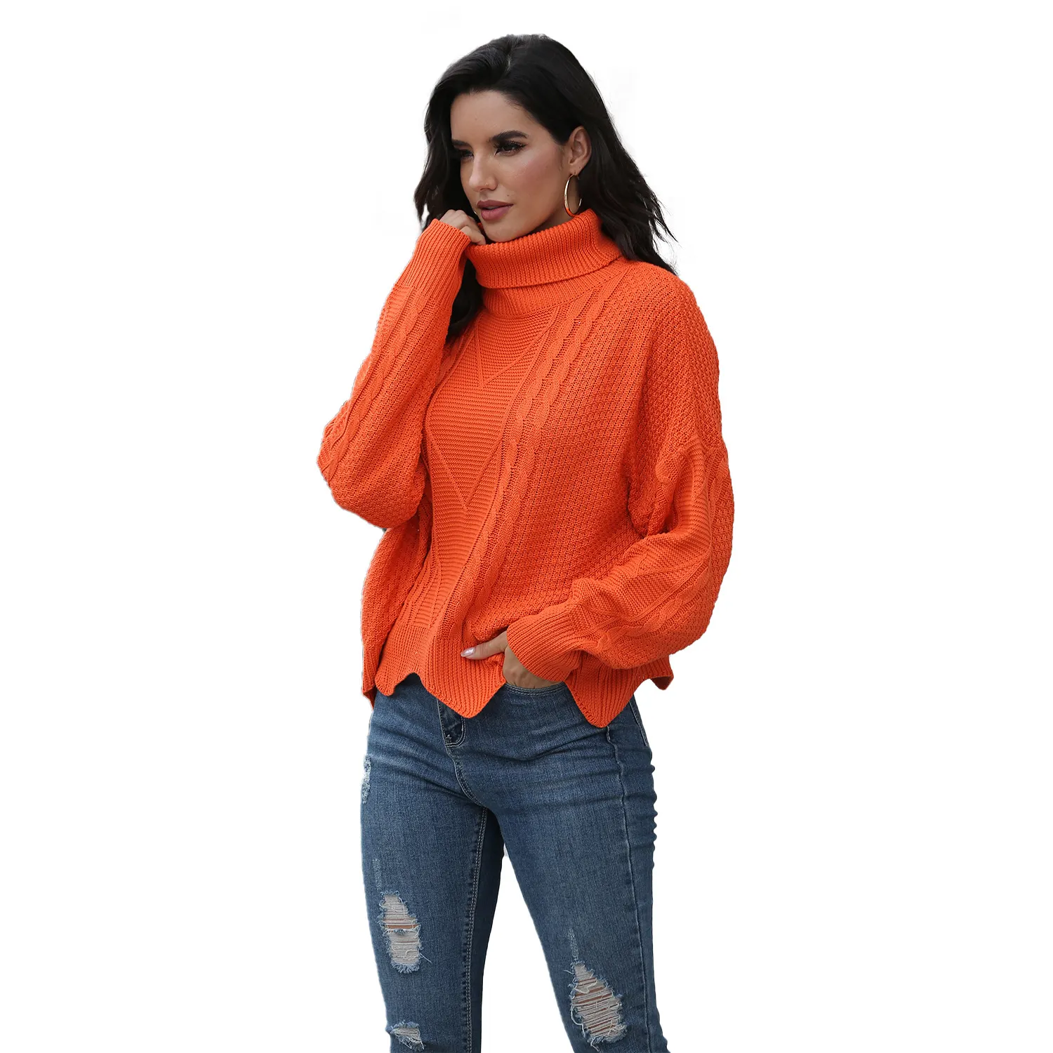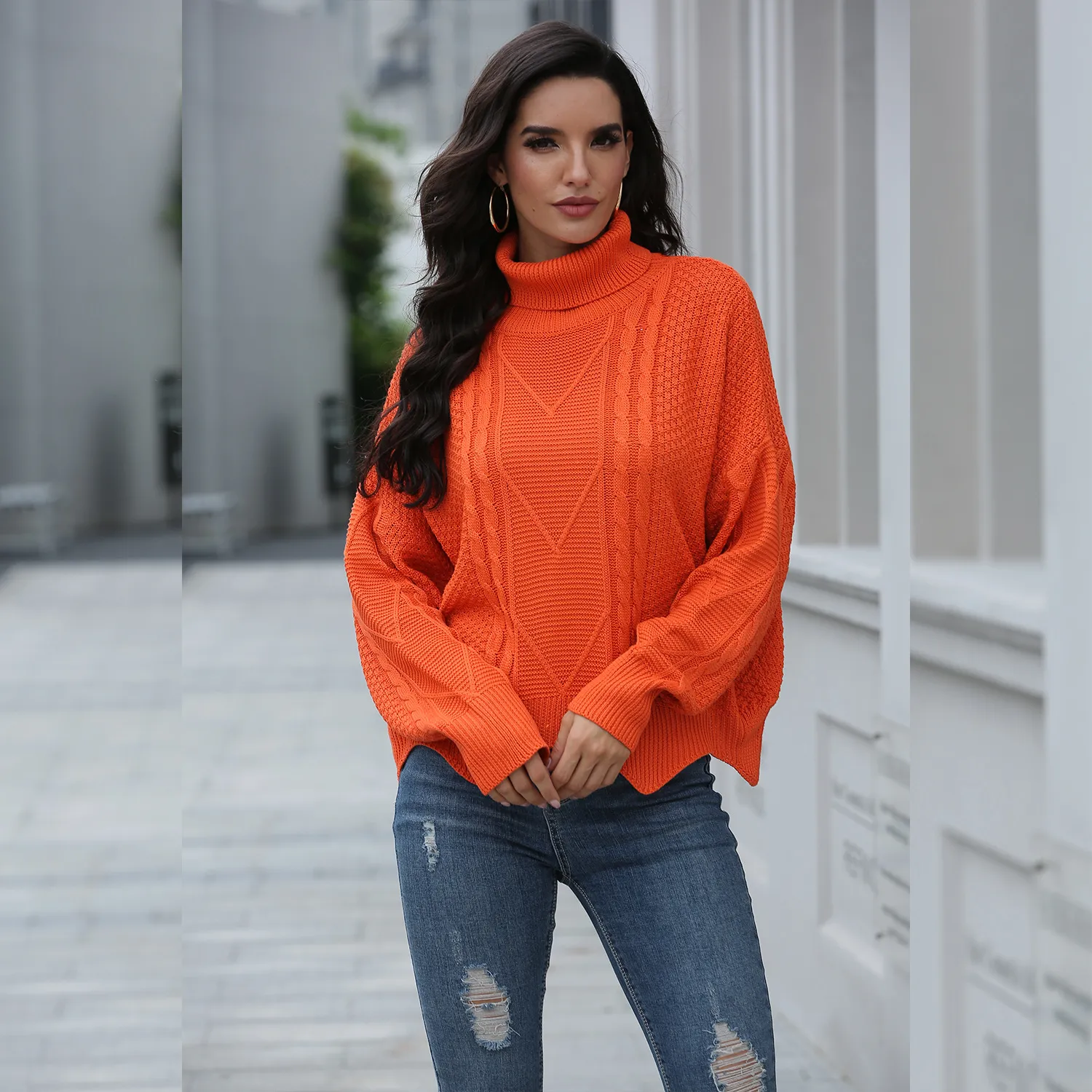 Loose solid color sweater women winter