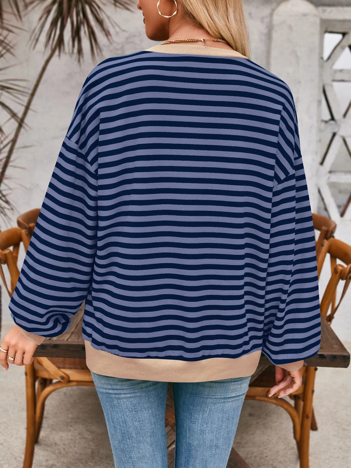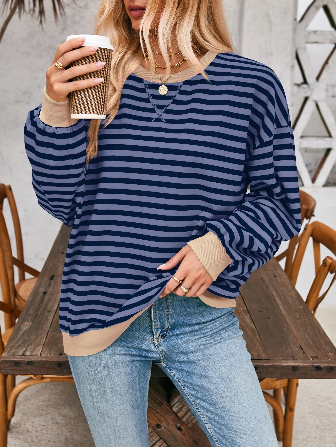 Loose Striped Long Sleeve T-shirt Casual Pullover Sweater For Womens Clothing