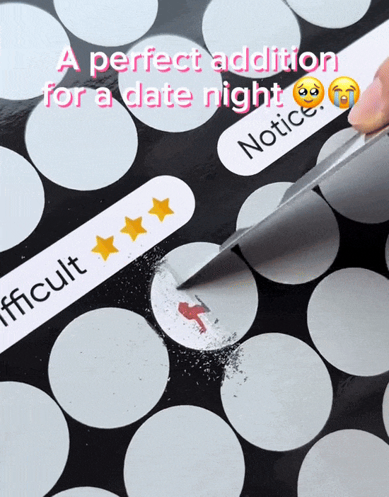 Create Lasting Memories Each scratch-off reveals a new challenge, making every date night a unique adventure. These shared experiences help build lasting memories and a stronger bond.Discreet and Convenient The Love Game Poster comes in a discreet package, ensuring your privacy. It's easy to store and use, making it a convenient addition to your date nights.