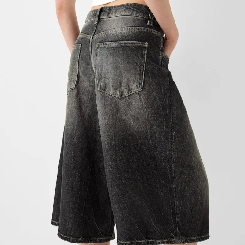 The durable denim fabric ensures that these pants are built to last while maintaining their shape and comfort. Their versatile design makes them suitable for various occasions, from casual outings to laid-back evenings. The low waist and cropped design add a modern touch, while the relaxed fit ensures all-day comfort.