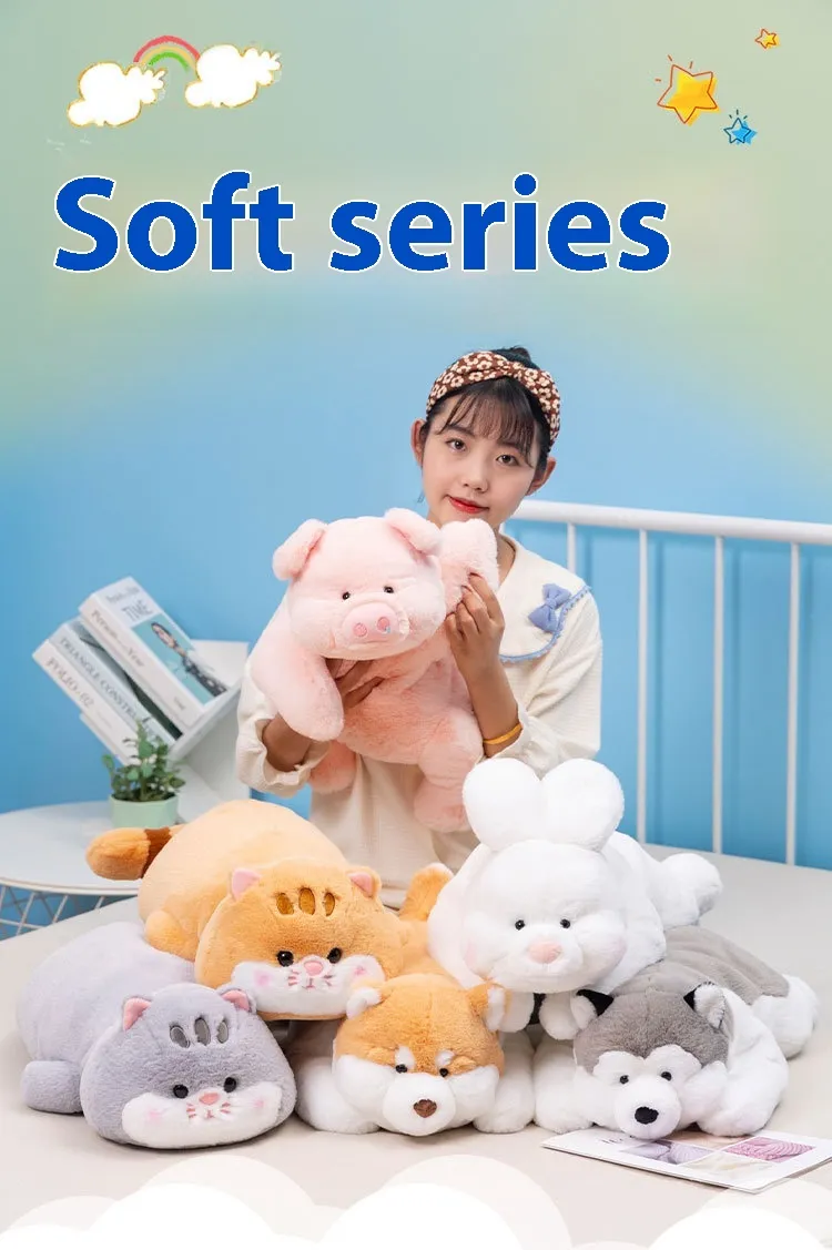 selection of cute animal characters, each with their unique design. From fluffy bunnies to sleepy cats, these plush animals add a whimsical