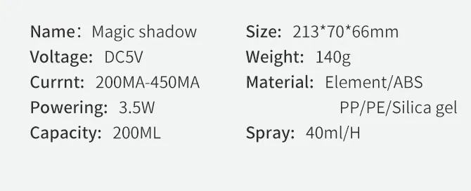 The Magic Shadow USB Air Humidifier is an innovative and efficient device designed to enhance the quality of the air around you. This compact and stylish humidifier is perfect for those seeking to improve their environment by maintaining optimal humidity levels. Whether you're at home, at the office, or in a car, the Magic Shadow USB Air Humidifier helps you breathe easier and stay comfortable.