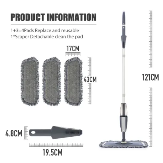 The Magic Spray Mop features a built-in spray mechanism that allows you to control the amount of cleaning solution used, ensuring the perfect balance of moisture for your wood floors. Whether you need to tackle dirt, dust, or sticky messes, this mop ensures that your floors are left gleaming without the hassle of traditional mopping.