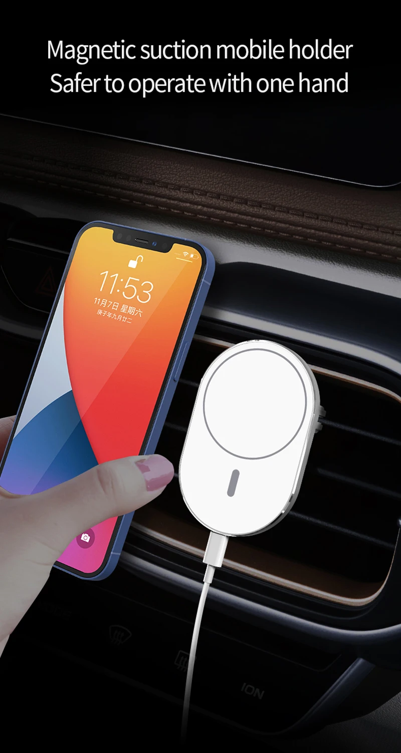 Magnetic Cell Phone Car Holder for MagSafe iPhone 12, 13, 14, 15 Pro Max - 15W Qi Wireless Charger