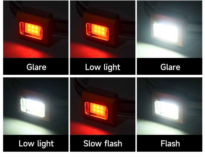 6 gears: bright white light-low light white light-flashing red light-double flashing red/white light-bright red-low light red