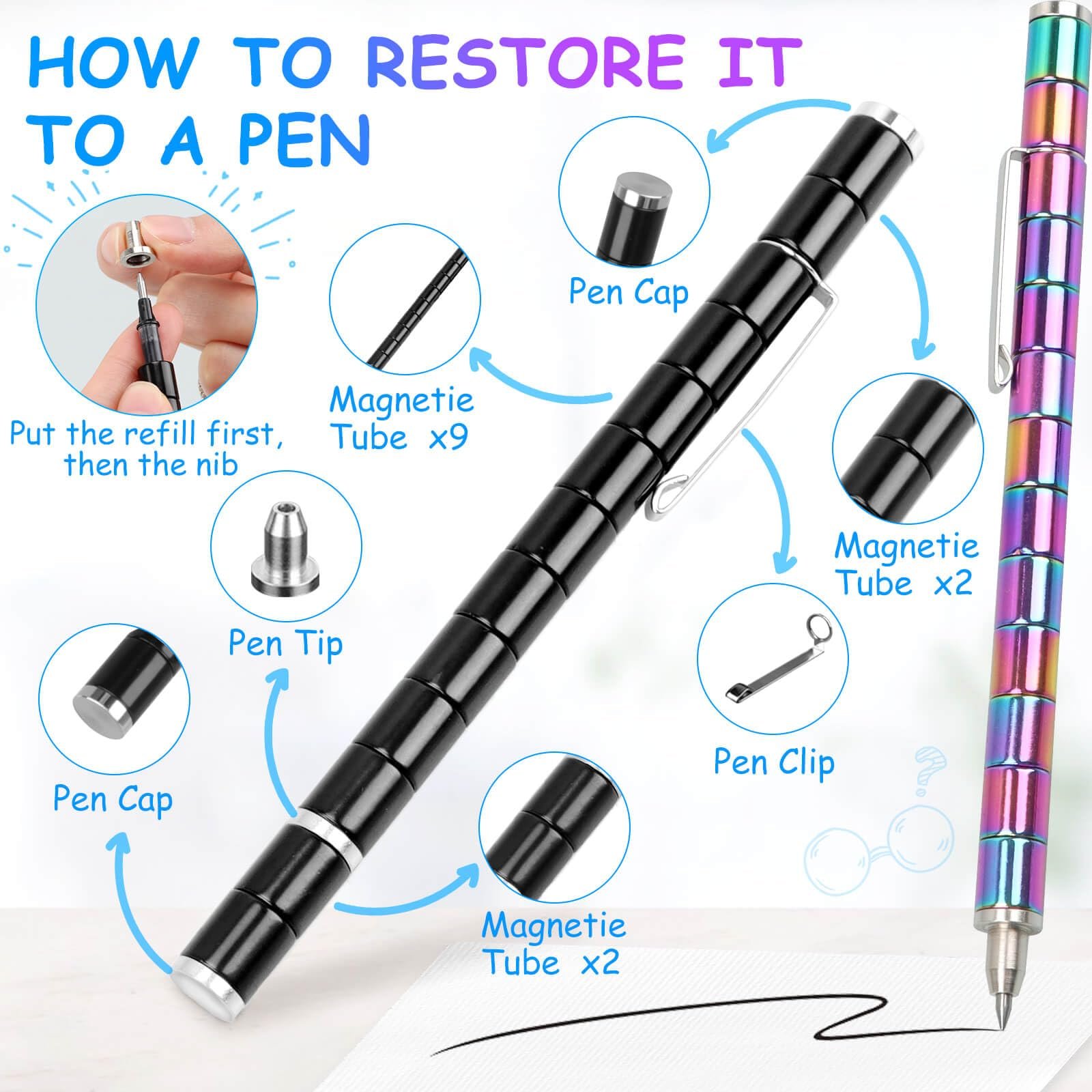 - MAGNET TOYS PENS: This fidget pen is not just a pen, also be a finger fidget toy. It can be rotated and transformed into a variety of creative, free combination, multiple and diverse plays.Perfect stress-relief toy for kids, teachers, students, engineers, doctors, lawyers, designers, and other mental workers.
