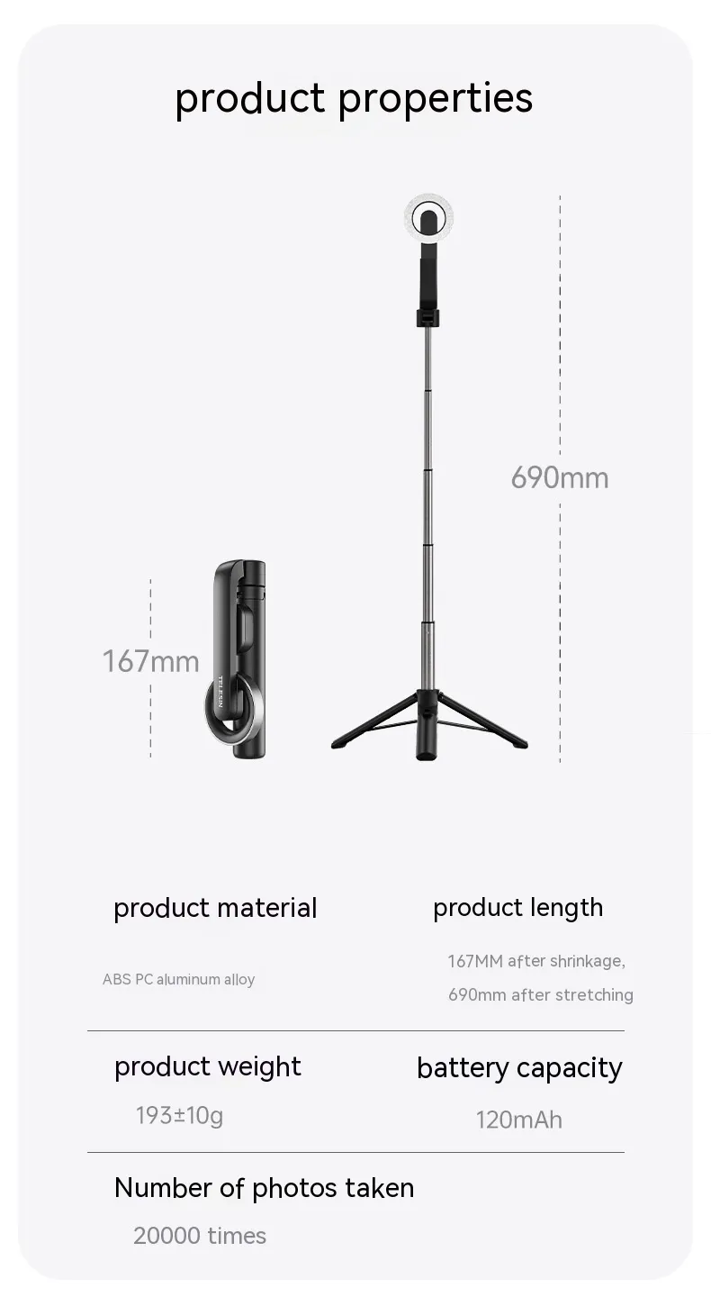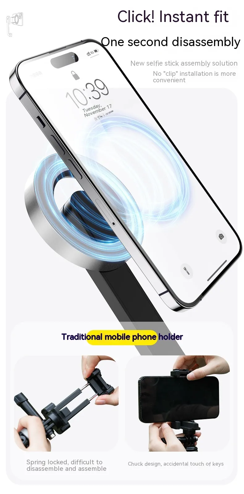 Magnetic Mobile Phone Mini Selfie Stick Bluetooth Remote Control Aluminum Alloy Tripod