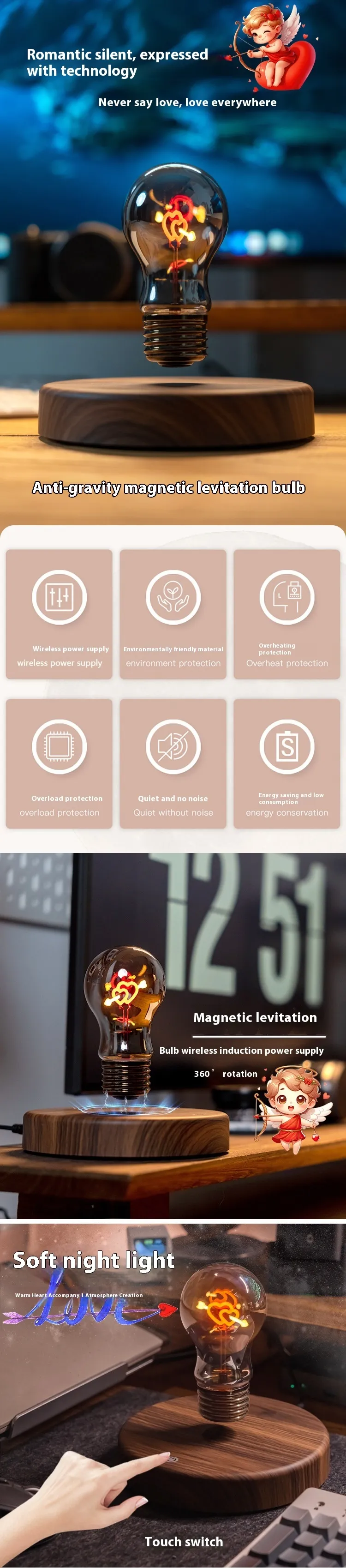 - Suspension Technology: Magnetic levitation for floating and rotating bulb