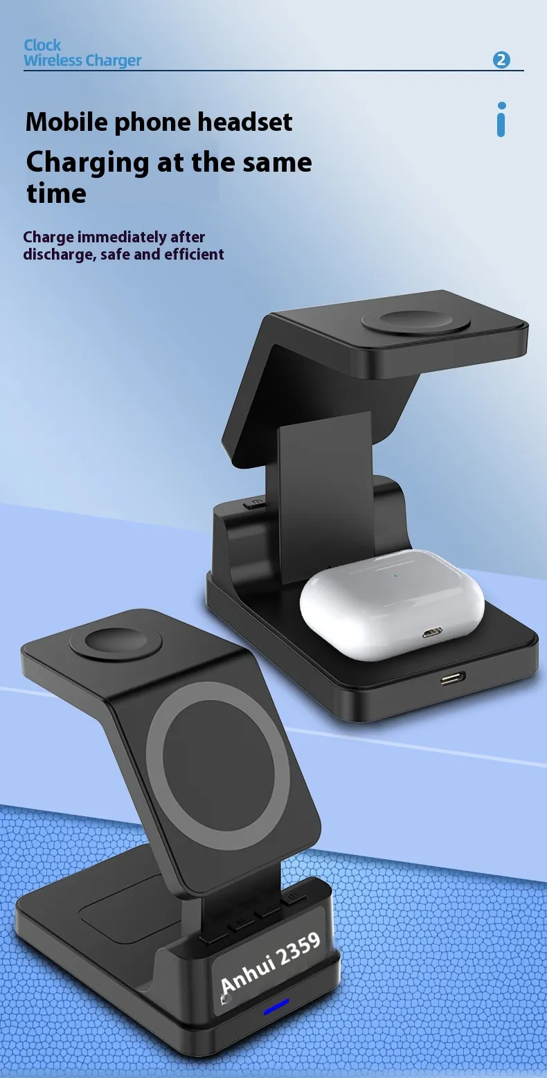 Magnetic Three-in-one 15W Wireless Charger With Clock