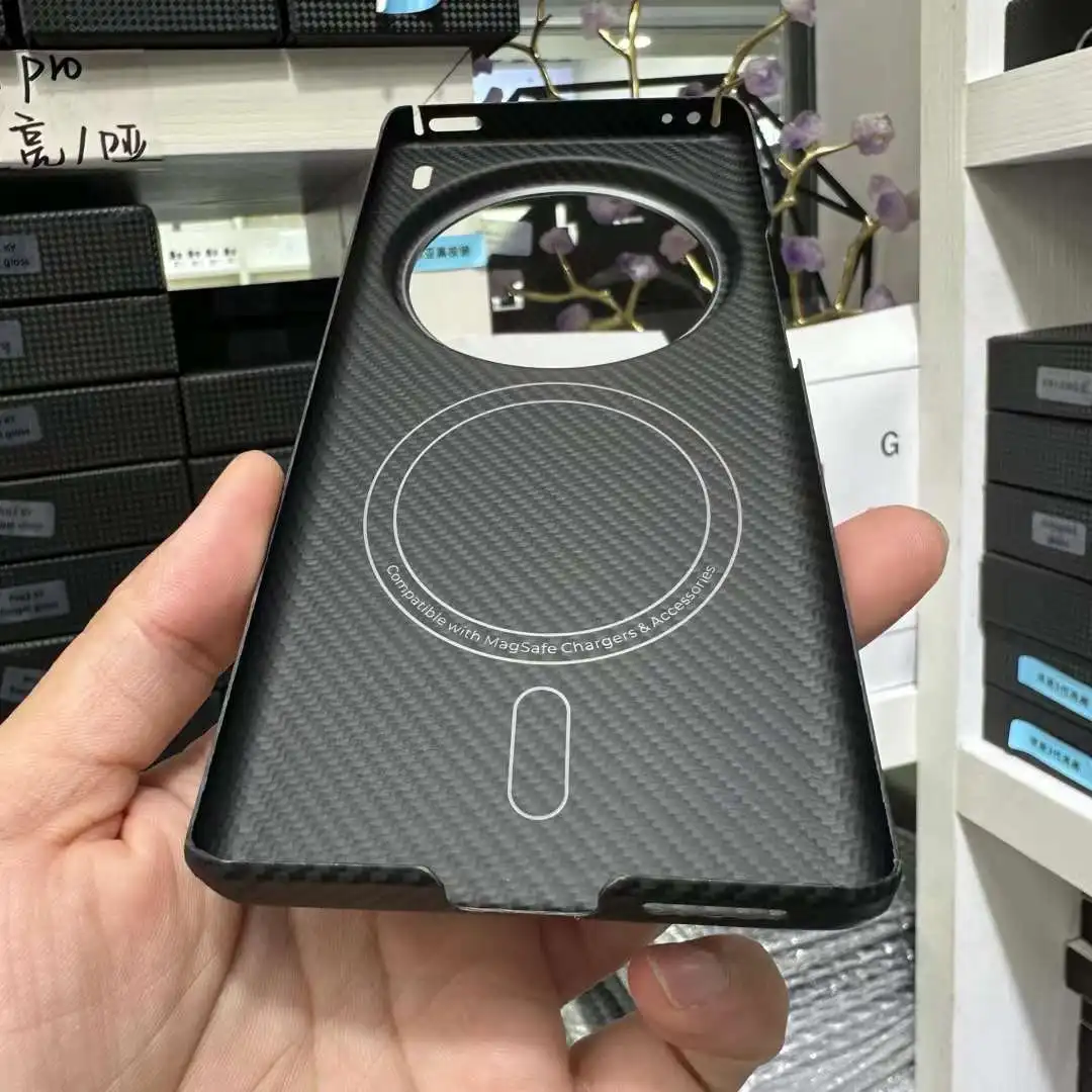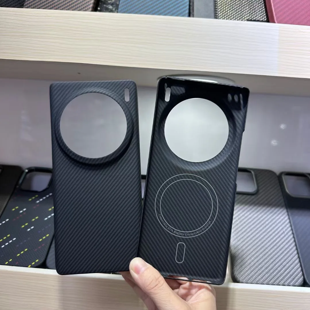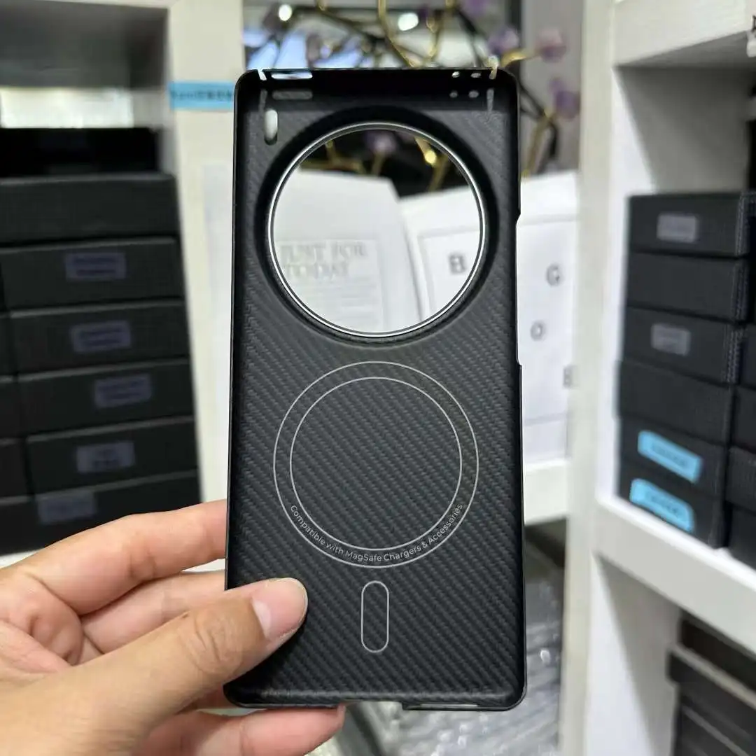 This MagSafe case for the Vivo X100 Ultra is made from premium carbon fiber and aramid fiber, offering exceptional shockproof protection. The sleek design integrates MagSafe compatibility, ensuring secure attachment to accessories while providing robust defense against impacts and scratches.