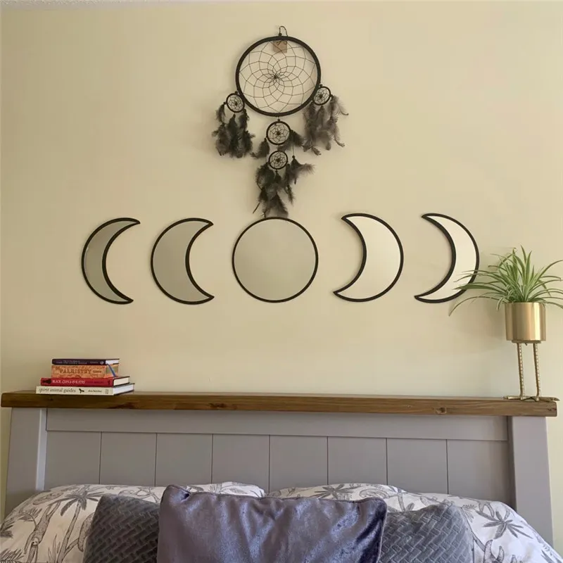 Color classification: 5-piece set of black moon phase decorative mirror; 5-piece set of log-colored moon phase decorative mirror