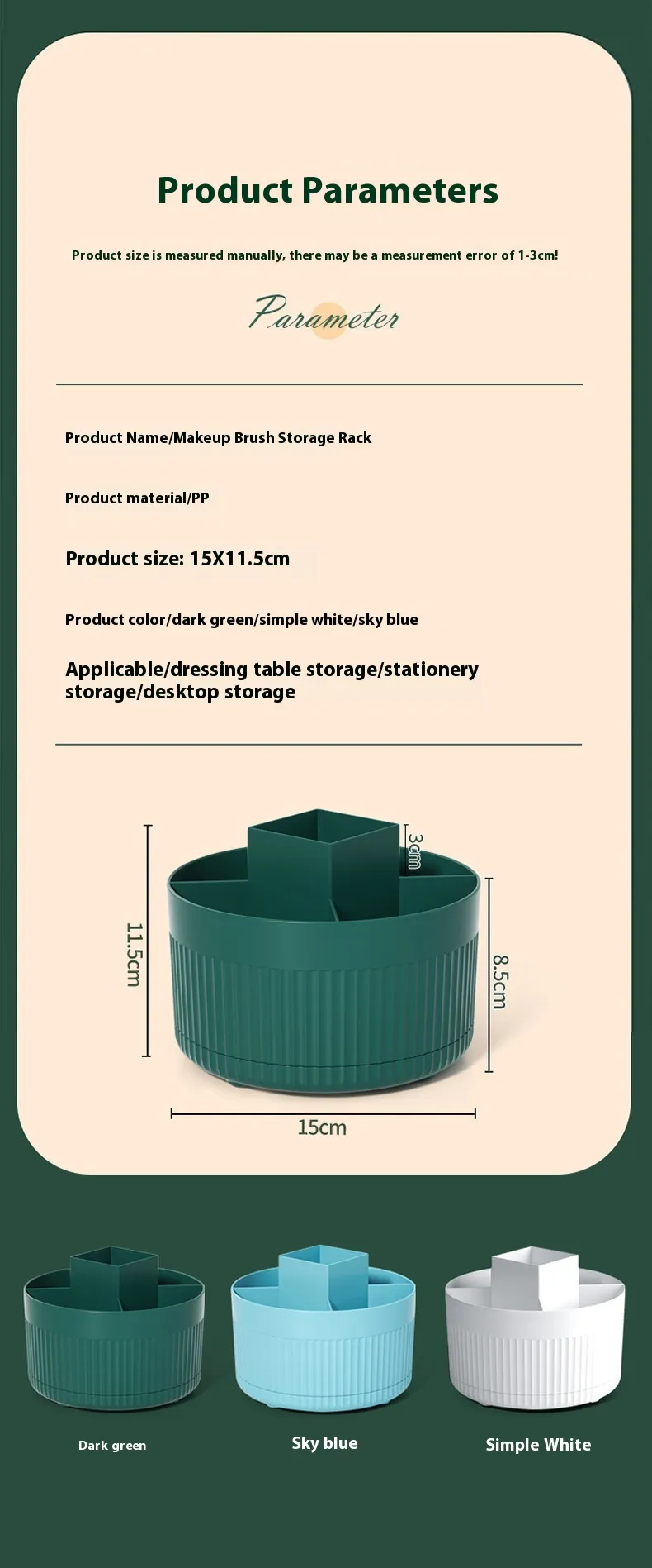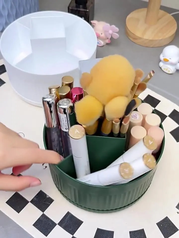 Color: Ivory White★Rotatable makeup brush storage tube, dark green★Rotatable makeup brush storage box