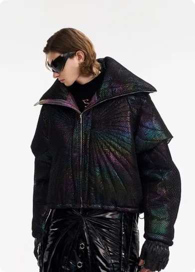 Unique and Bold Style: The combination of the large collar, alien-inspired design, and short fit silhouette makes this