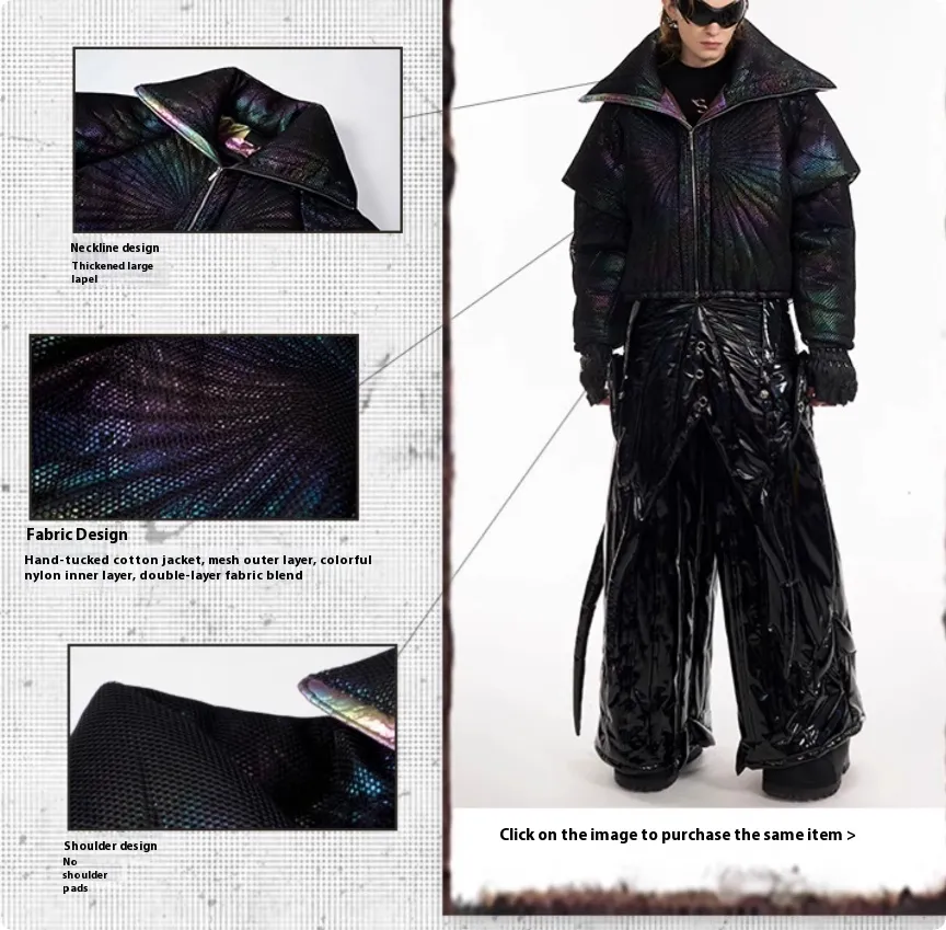 The Male Dark Knight Large Collar Alien Short Cotton Jacket is a must-have for anyone looking to add a touch of futuristic style to their wardrobe. Its bold design and unique features set it apart from traditional jackets, making it perfect for those who want to make a statement. Whether you’re a fan of sci-fi, streetwear, or just looking for something that stands out, this jacket offers an edgy, stylish, and versatile piece to elevate your look.