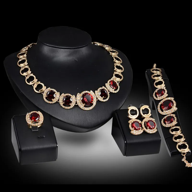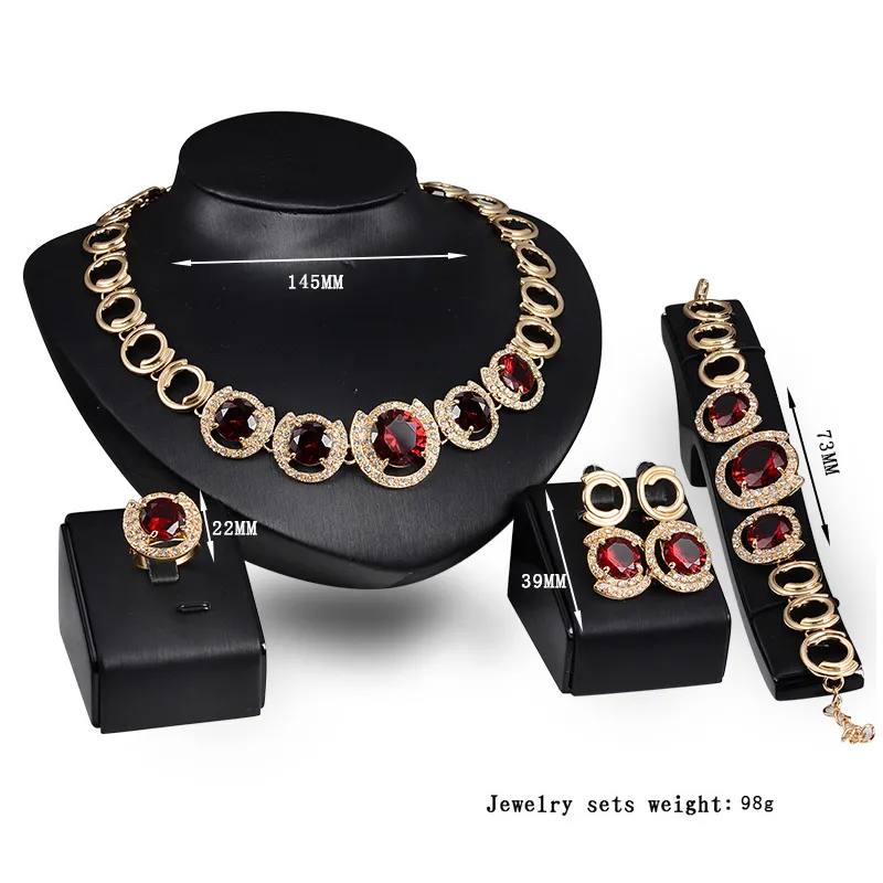 This four-piece jewelry set includes everything you need to complete your wedding or banquet ensemble. Each piece is designed to complement the others, offering a coordinated and elegant look.