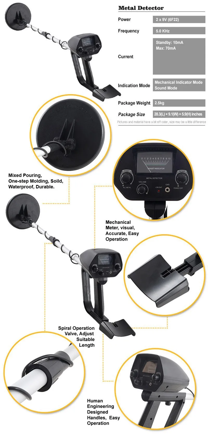 The MD-4030 Underground Metal Detector is a powerful, reliable, and user-friendly tool designed for treasure hunters, hobbyists, and professionals seeking to uncover valuable metals hidden beneath the ground. Whether you're searching for coins, jewelry, relics, or gold, the MD-4030 provides advanced metal detection capabilities to help you find buried treasures with ease and precision.