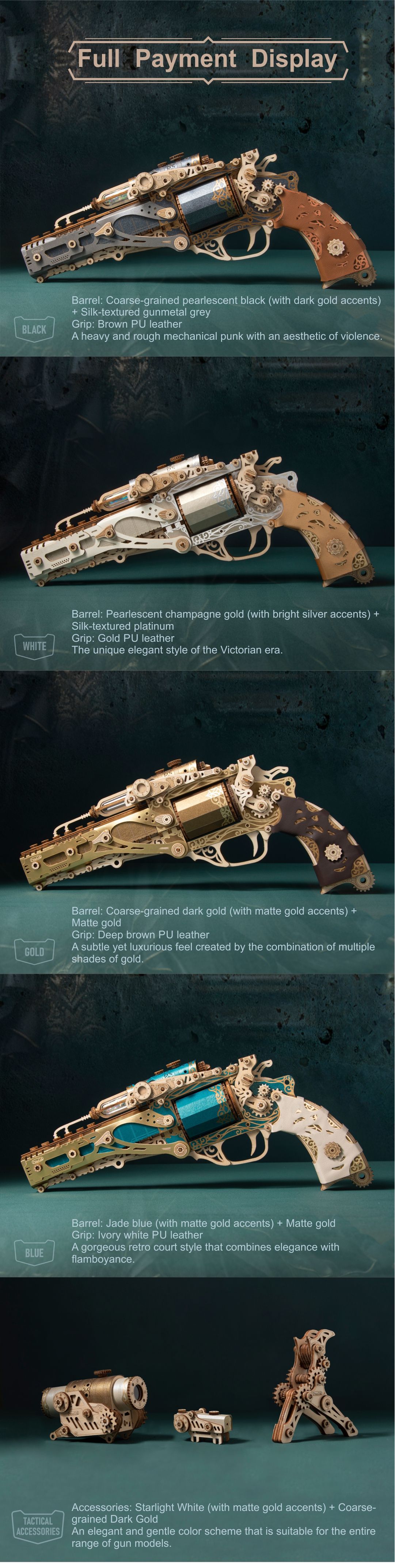 Color: black, gold, white