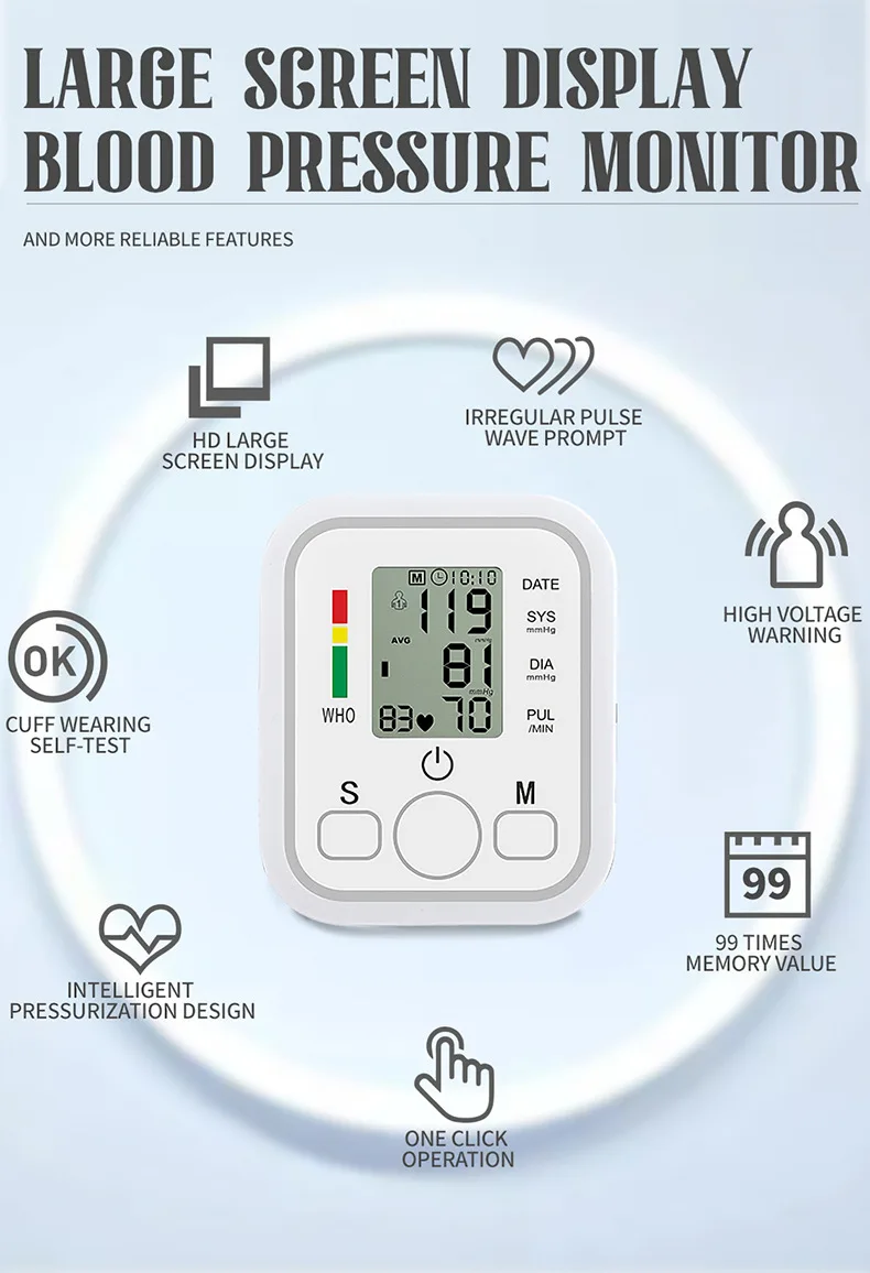 Medical Digital Arm Blood Pressure Monitor - Automatic Tensiometer & Heart Rate Pulse Meter