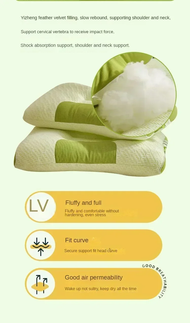 This pillow’s ergonomic design is specifically created to provide optimal support for the cervical spine. It helps to alleviate neck pain and stiffness, offering targeted relief for those with poor sleep posture or who suffer from conditions like cervical spondylosis. The non-pressure design gently cradles your head and neck, helping you maintain the best sleeping posture throughout the night.