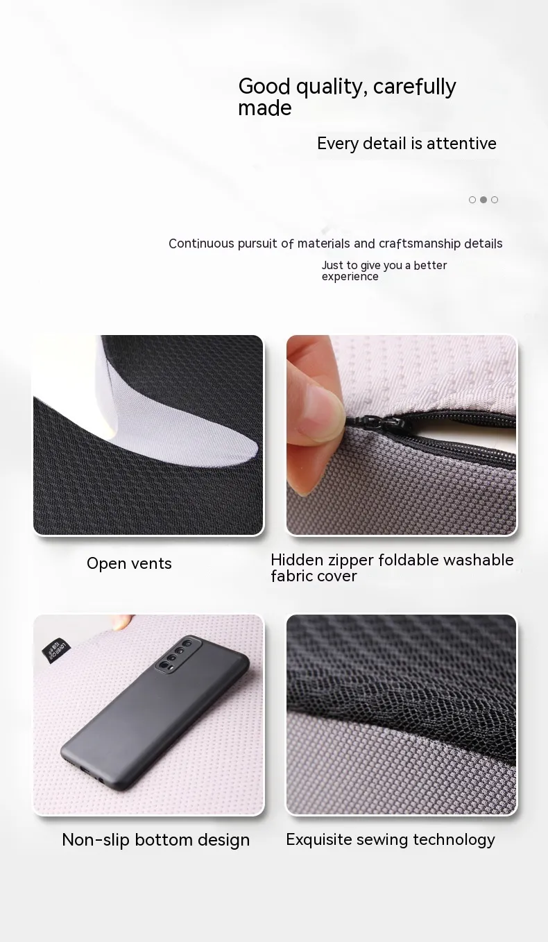 To ensure stability and prevent slipping, the cushion is equipped with a non-slip bottom. This feature keeps the cushion securely in place, even on smooth surfaces like office chairs, car seats, or benches, so you can focus on your work or travel without distraction.
