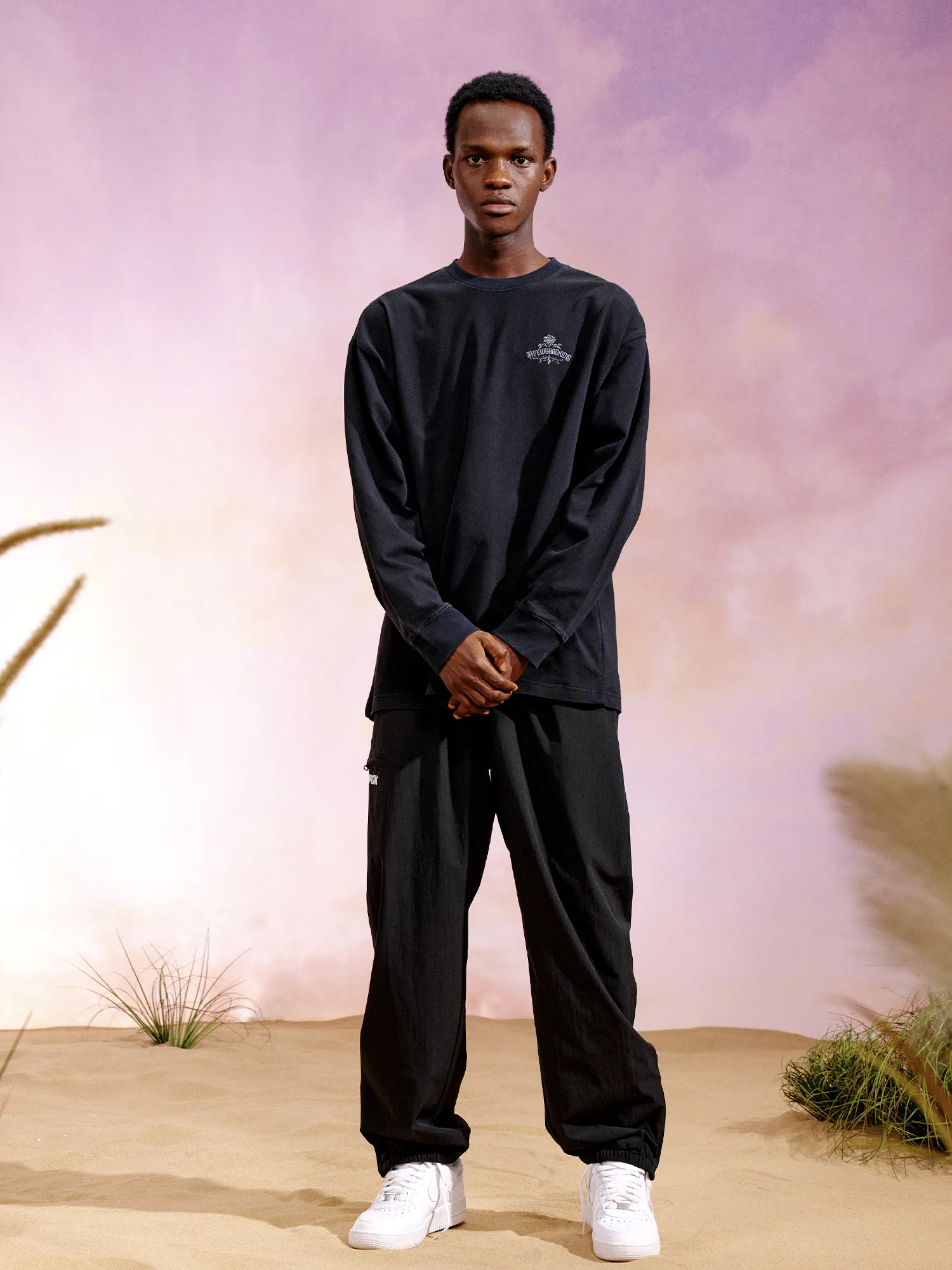 Men's American Street Wash Old Rose Embroidery T-shirt