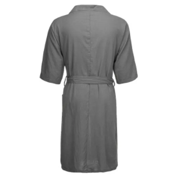 The lightweight linen material provides a soft, smooth feel against the skin, while the long sleeves and adjustable belt offer a secure and customized fit. This bathrobe is perfect for both men and women, making it a versatile option for anyone looking for an elevated loungewear piece. Whether you're wrapping yourself up after a bath, relaxing at home, or enjoying your morning coffee, this bathrobe combines luxury and functionality for the ultimate comfort.