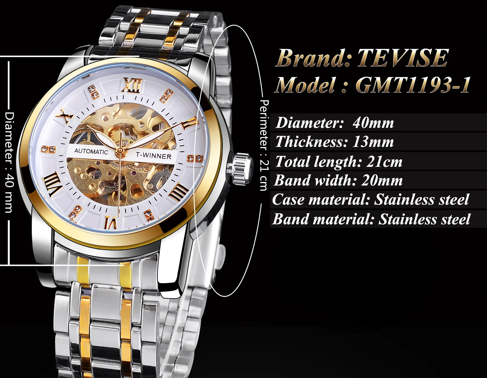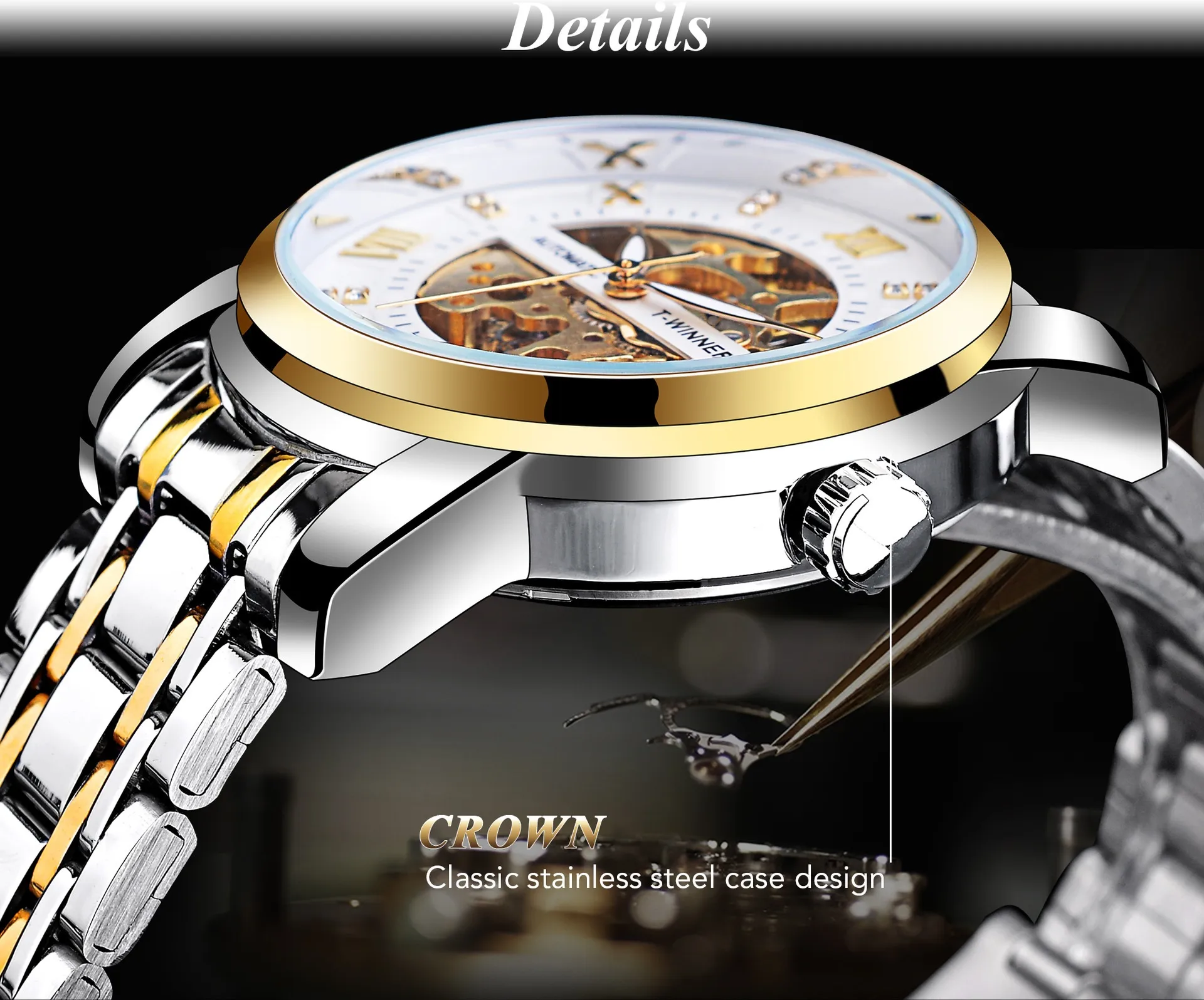 Powered by precise mechanical movements, this watch requires no battery and operates smoothly with manual or automatic winding, providing a traditional watch experience.