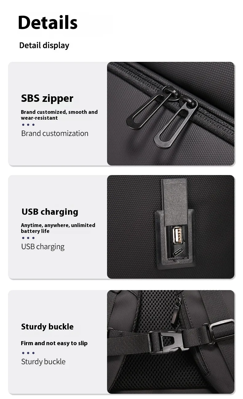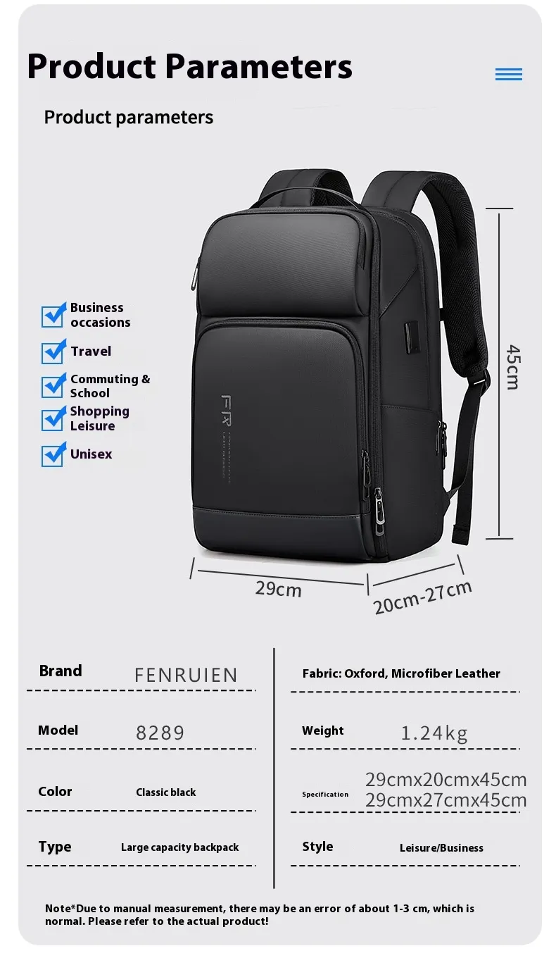 its spacious interior provides ample storage for all your essentials.The Multi-Functional Business Commute Backpack features a large main