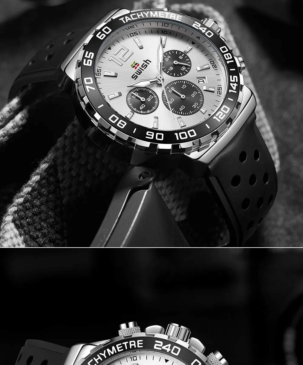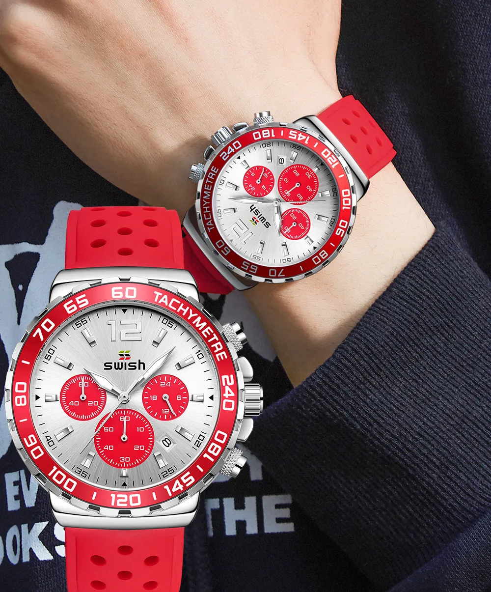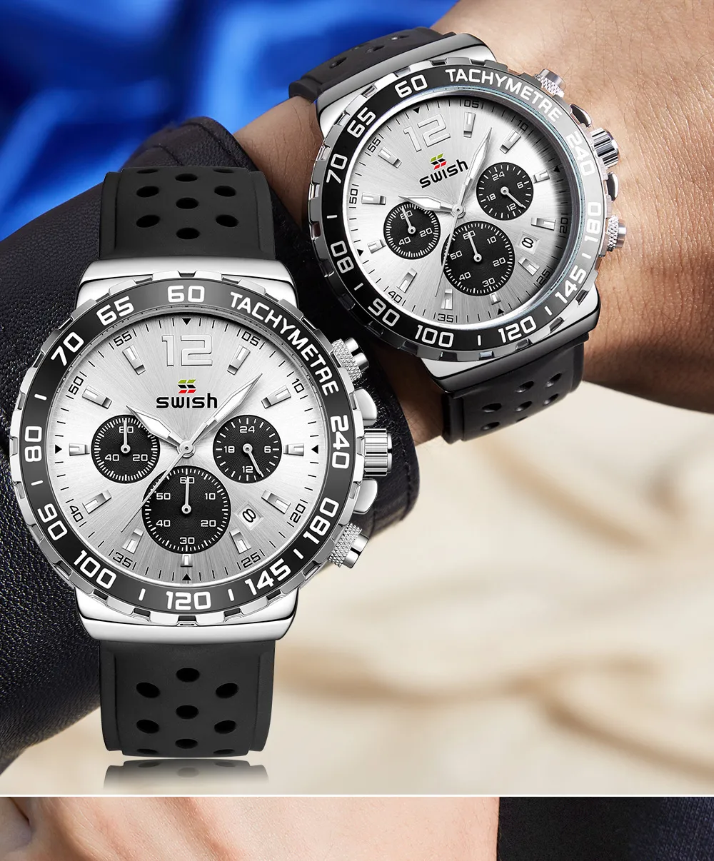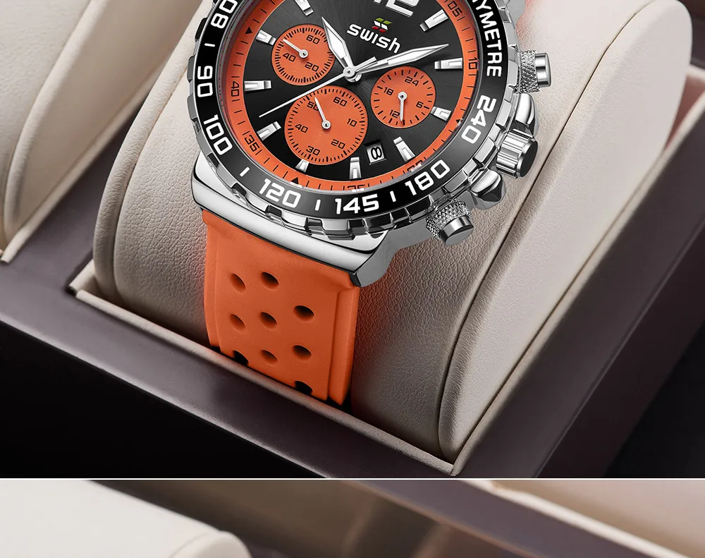 The Men's Luminous Sports Breathable Hole Silicone Strap Six-Pin Quartz Watch is the perfect companion for men who live an active lifestyle