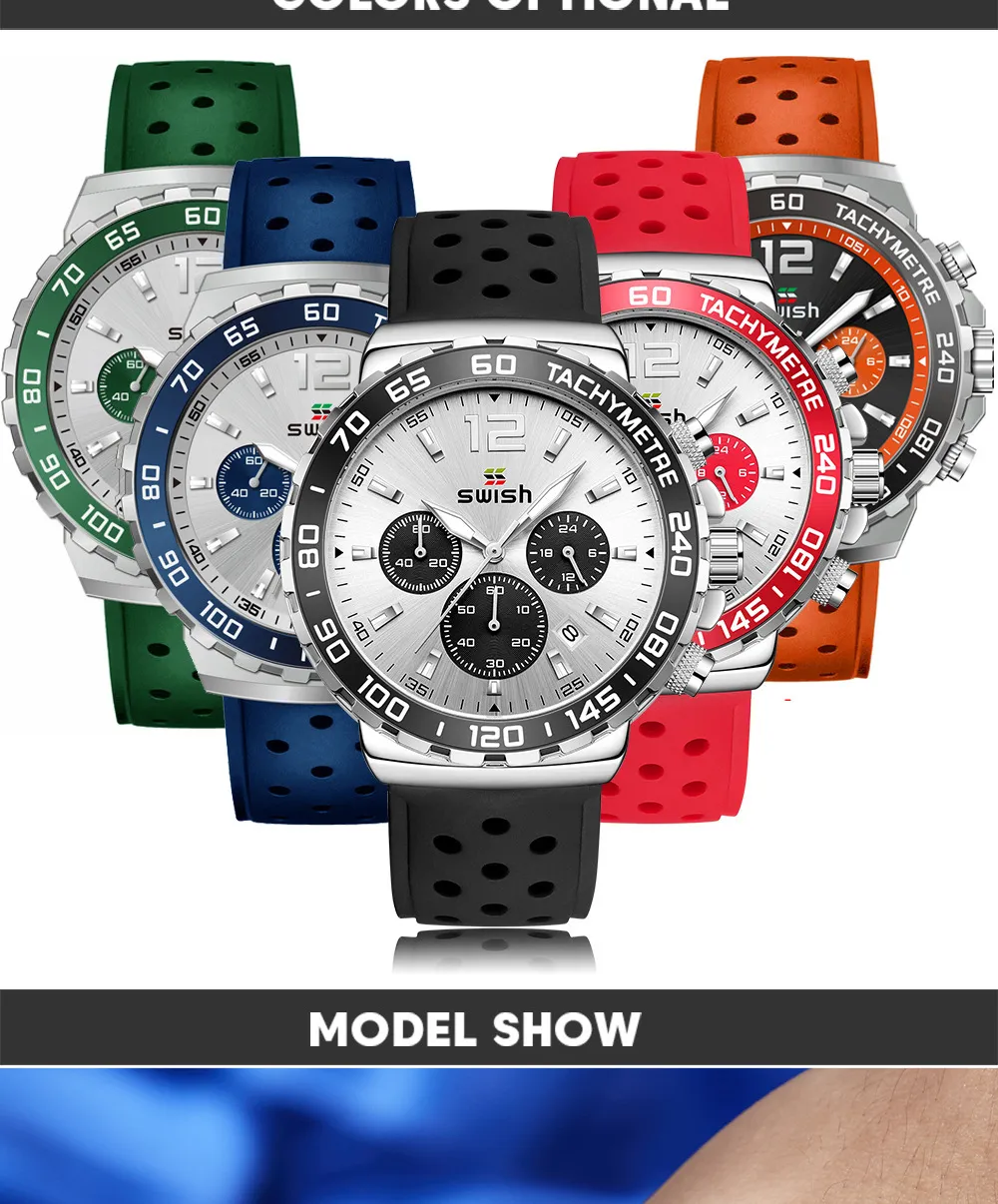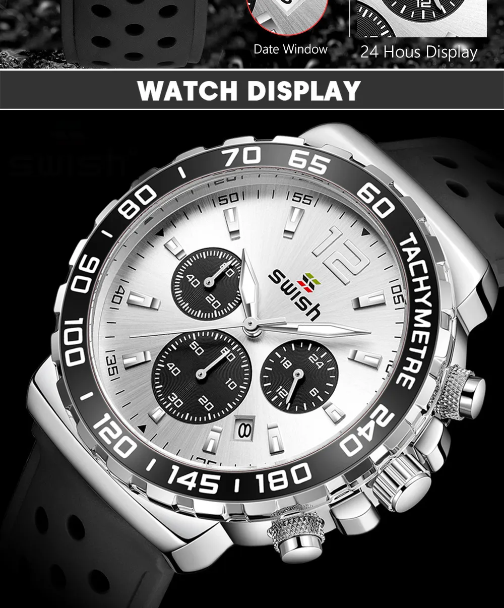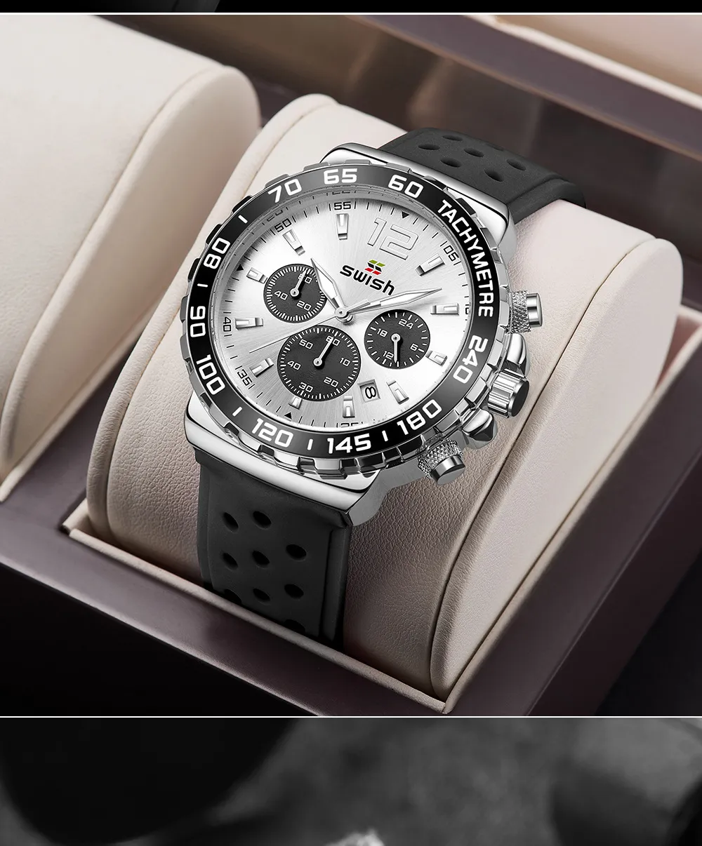 The Men's Luminous Sports Breathable Hole Silicone Strap Six-Pin Quartz Watch is the perfect companion for men who live an active lifestyle