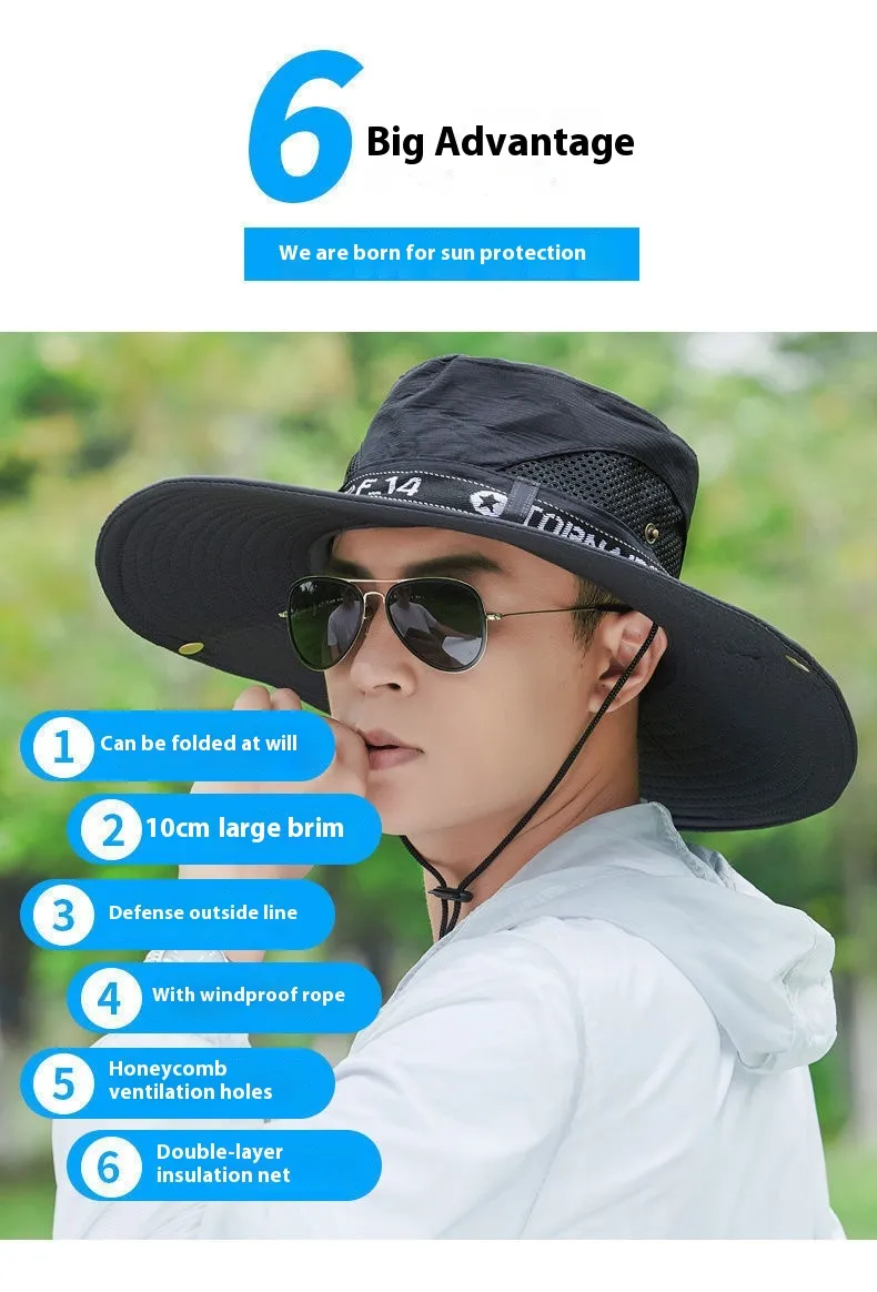 Men's Outdoor Deep Top Big Brim Breathable Sun Hat
