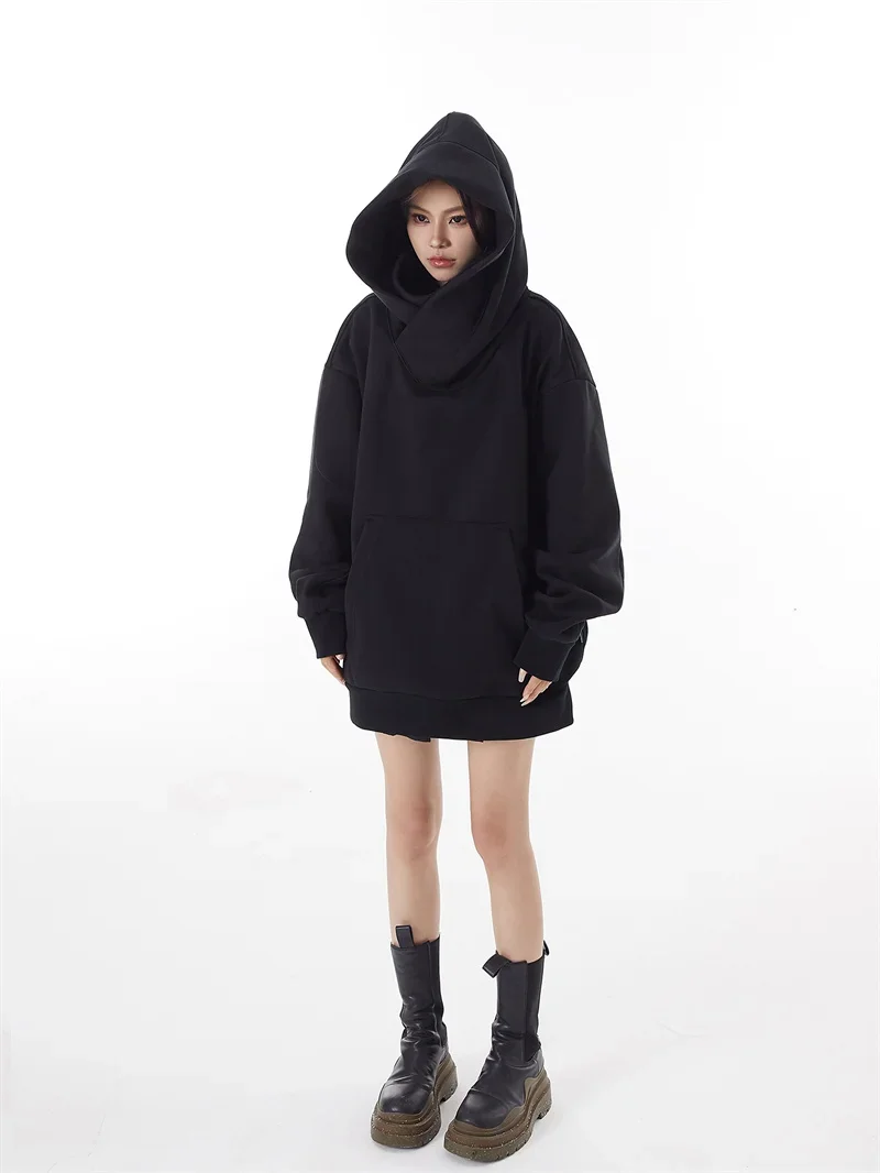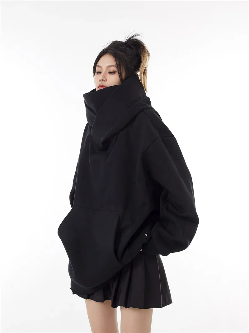 This hoodie is a celebration of Y2K fashion, bringing back the oversized silhouettes and clean, solid color palettes that defined an era. The minimalist design makes it versatile enough to blend seamlessly into a variety of looks, while the unique turtleneck adds a distinct touch of personality.