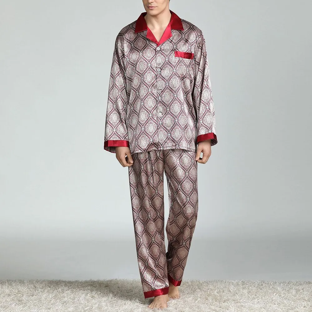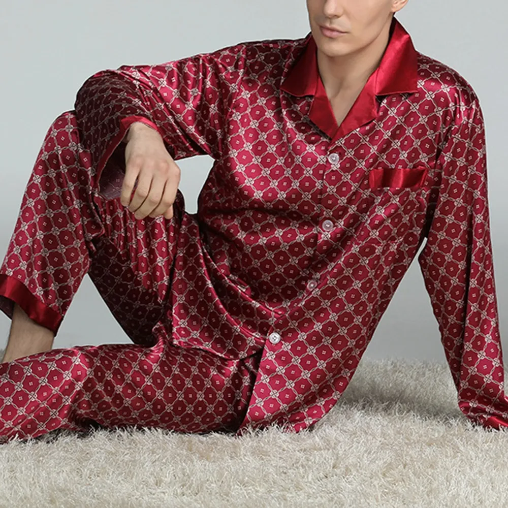 and warm when it's cool. This makes the Men's Printed Silk Pajamas ideal for spring and summer, offering comfort without