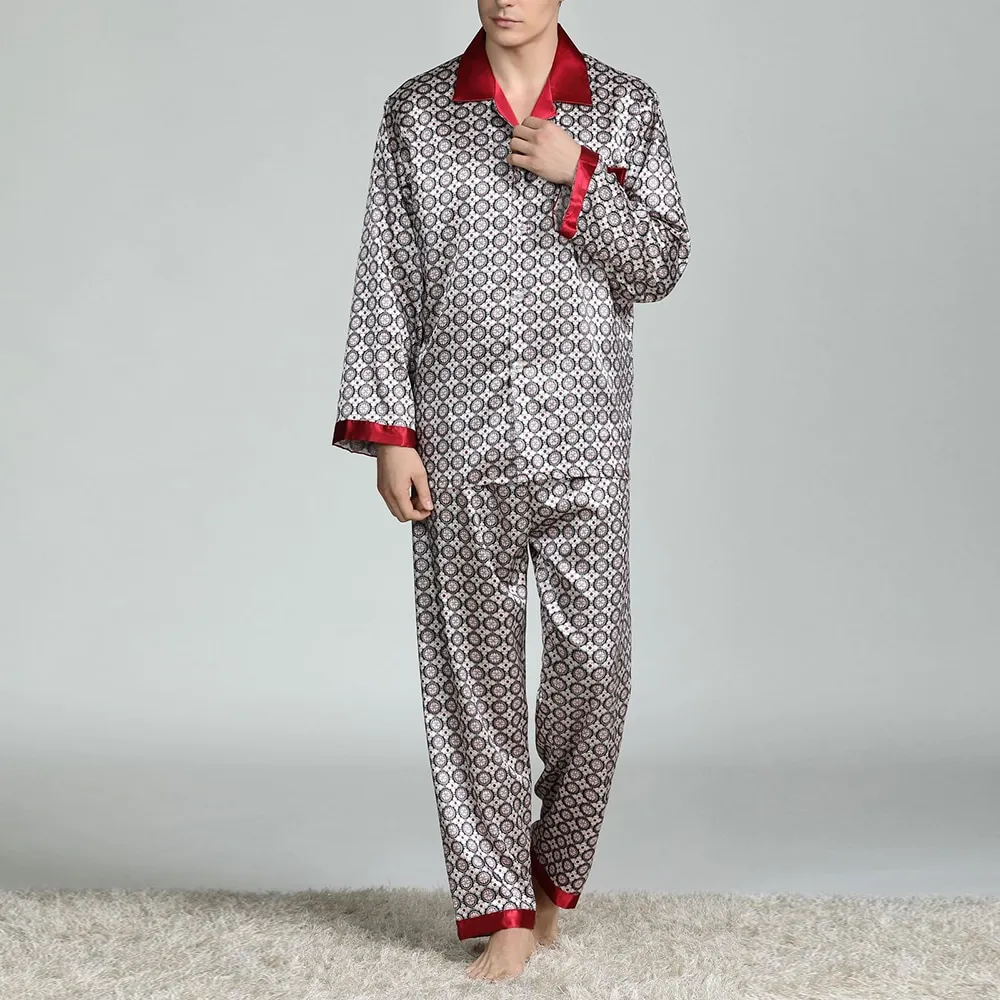 Luxurious Comfort: The Men's Printed Silk Pajamas Spring and Summer Long-Sleeved Suit offers a silky