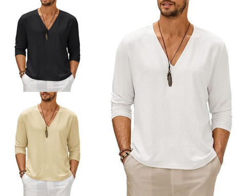 In addition, this T-shirt features a fashionable V-neck design, showcasing the neckline and enhancing facial contours. The long-sleeved design provides warmth for cooler seasons while protecting the arms. The simple style is easy to match with any pants and shoes, making your overall look more perfect. In summary, this is a must-have item that can add highlights to your wardrobe, whether for everyday wear or paired with other clothing.
