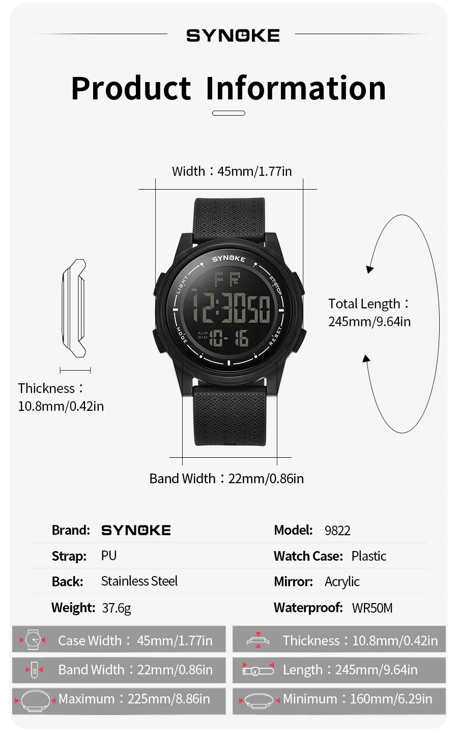 In conclusion, the Men's Sports Electronic Watch Lightweight Design Large Screen Luminous Student Watch is a must-have for anyone seeking a reliable, stylish, and functional watch that suits their active lifestyle. With its comfortable fit, high-performance features, and sleek design, it offers everything you need in a timepiece. From fitness tracking to timekeeping, it ensures that you stay on top of your game, no matter the task at hand.