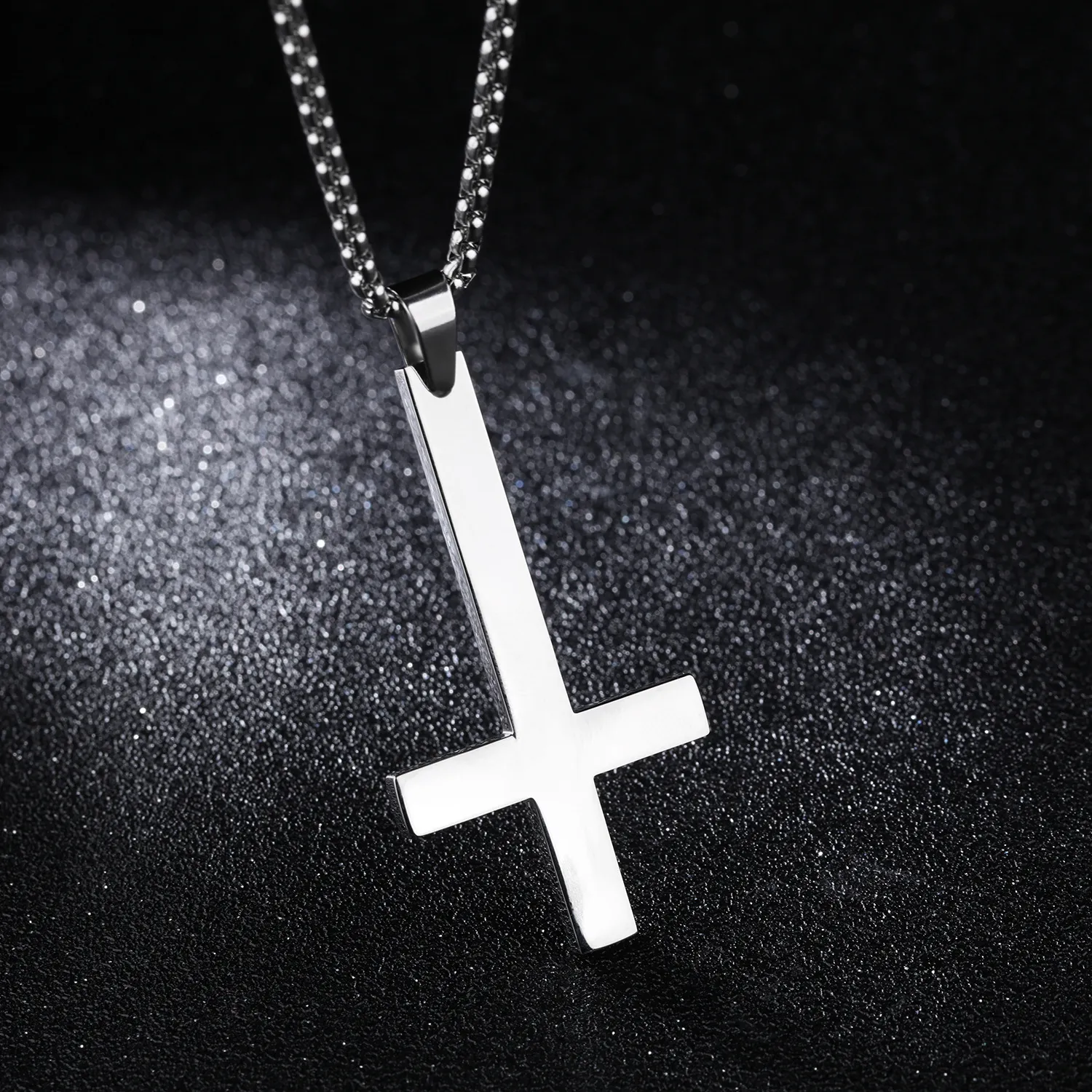 The inverted cross, often associated with counterculture or rebellion, adds a layer of mystique and power to this piece. Made from high-quality stainless steel, this necklace offers durability and a polished finish that will stand the test of time. Whether worn casually or paired with more formal outfits, this necklace is the perfect accessory for any occasion.