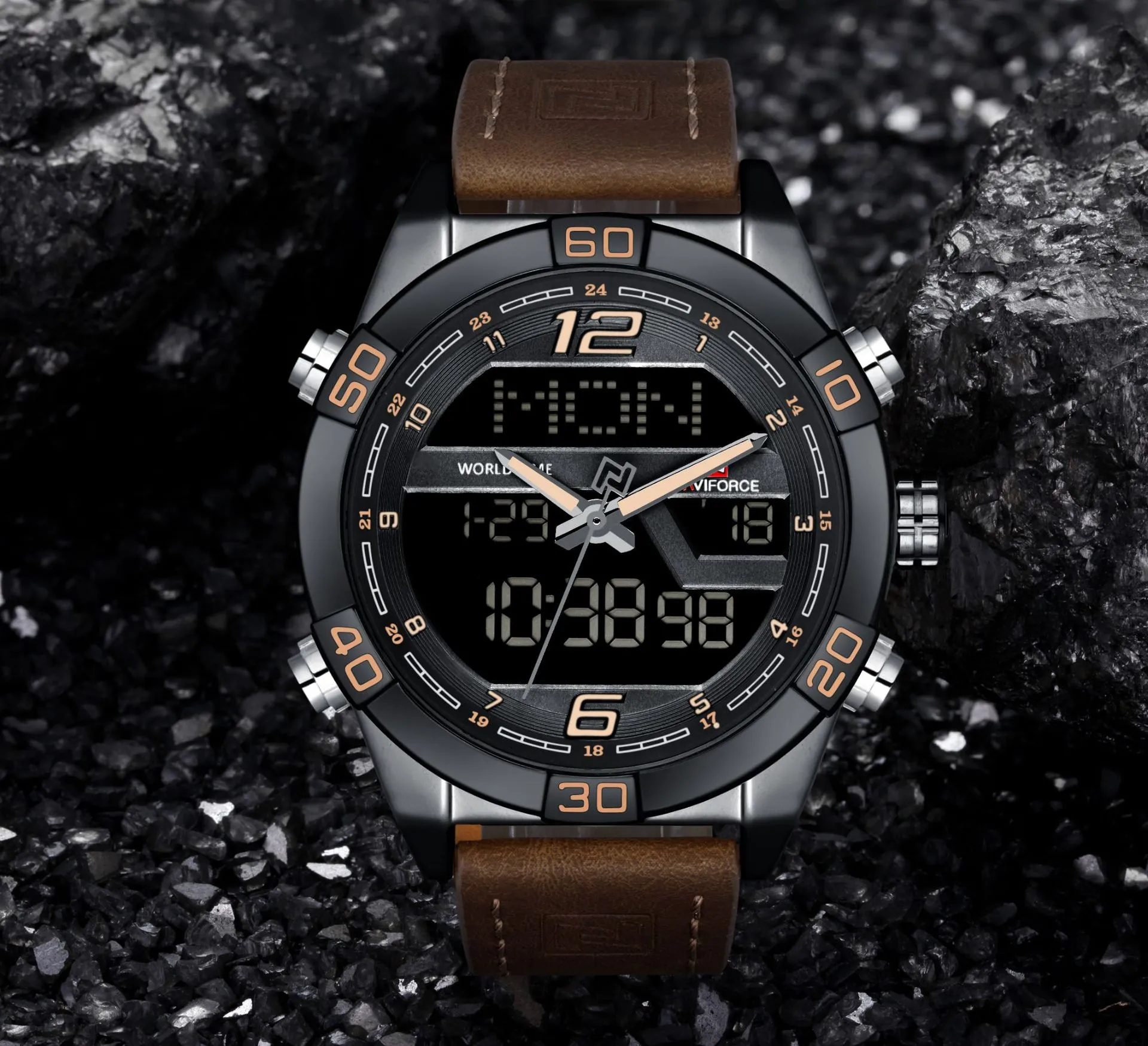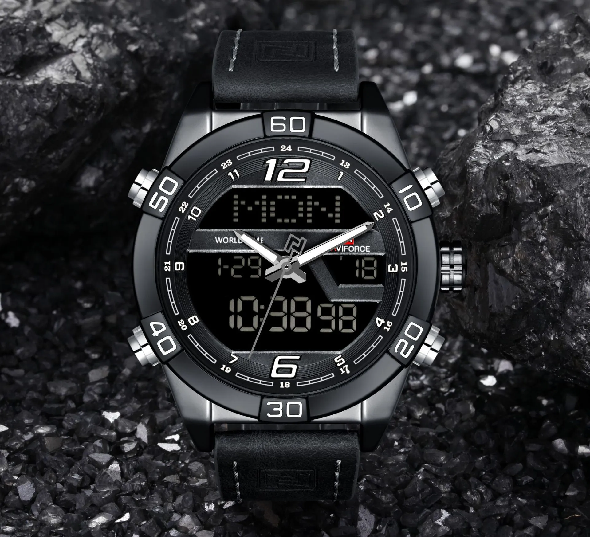 The Men's LED Electronic Quartz Watch is the perfect combination of style, technology, and durability. Featuring a modern LED display and classic quartz movement, this watch offers both digital and analog timekeeping in one sleek package. Whether you're looking for a watch that can keep up with your busy lifestyle or one that adds a touch of sophistication to your wardrobe, this versatile timepiece has you covered.With its waterproof design (rated 3ATM or higher), this watch is built to handle daily activities, from handwashing to accidental splashes or rain, making it an ideal companion for everyday wear. The durable belt, available in both leather and silicone options, ensures comfort and longevity, while the stainless steel case adds a layer of protection against wear and tear.The LED backlight display enhances visibility in low-light conditions, allowing you to read the time at night or in dark environments easily. The watch also features date display and alarm functions, providing practicality and convenience for users who need more than just timekeeping. The quartz movement ensures accurate timekeeping, giving you reliability without the need for frequent adjustments.Designed with versatility in mind, this watch is perfect for both casual and formal occasions. Its sleek, modern design complements a wide range of styles, making it an excellent choice for men who want a watch that can transition seamlessly between work, leisure, and fitness activities.Whether you're looking for a gift for someone special or a durable, stylish watch for yourself, the Men's LED Electronic Quartz Watch combines elegance, functionality, and durability in one striking timepiece.
