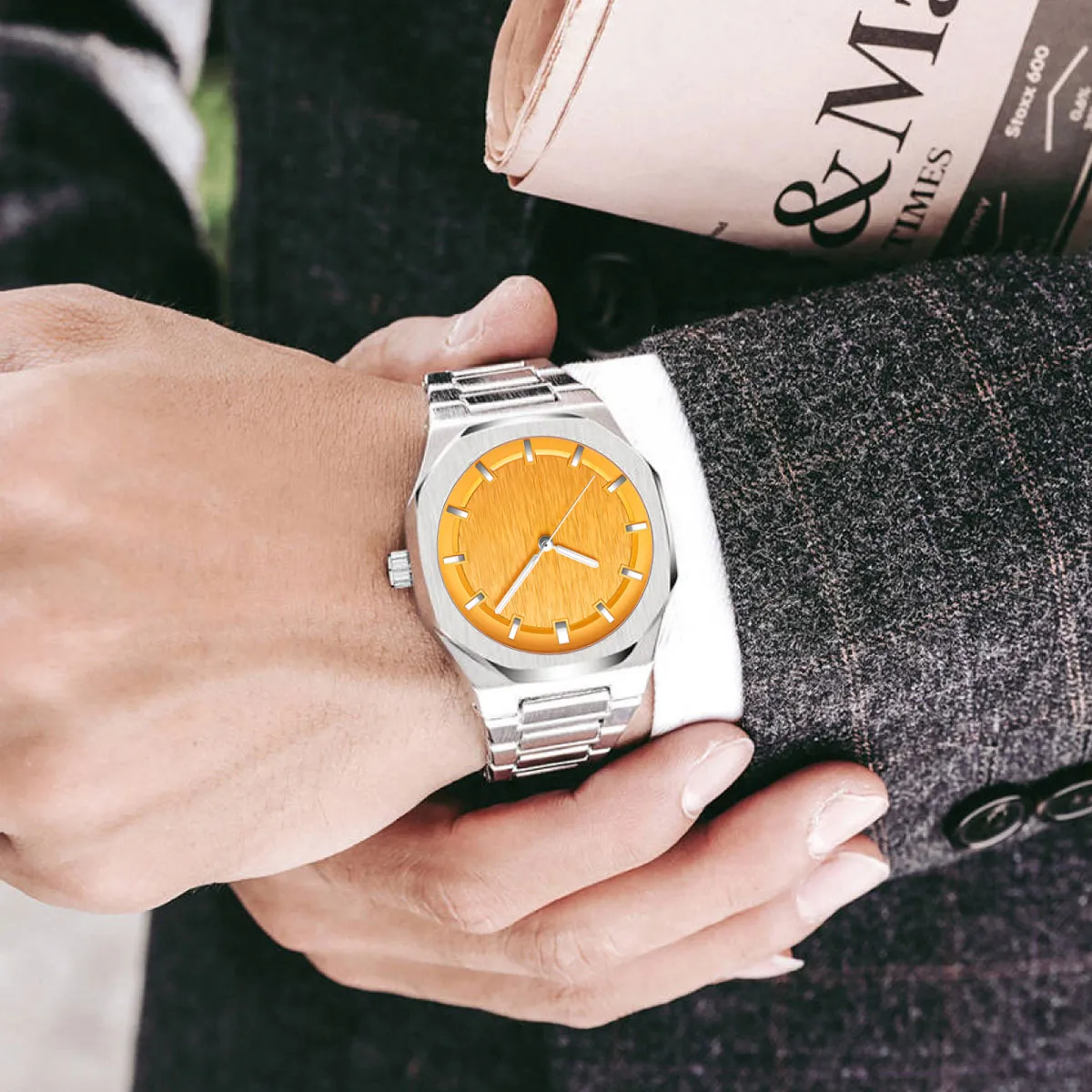 you punctual and organized throughout your day. The expansive dial, with minimal yet elegant hour markers and sleek hands, enhances
