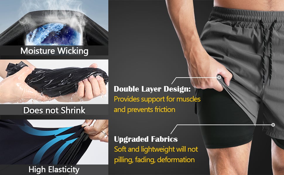 MULTI DESIGN - Joggers shorts have side pockets and built-in pocket,and concealed zip pocket,quick-dry fabric to keep you comfortable for wear, built-in shorts with compression fit offers support to thigh muscle to improve performance.