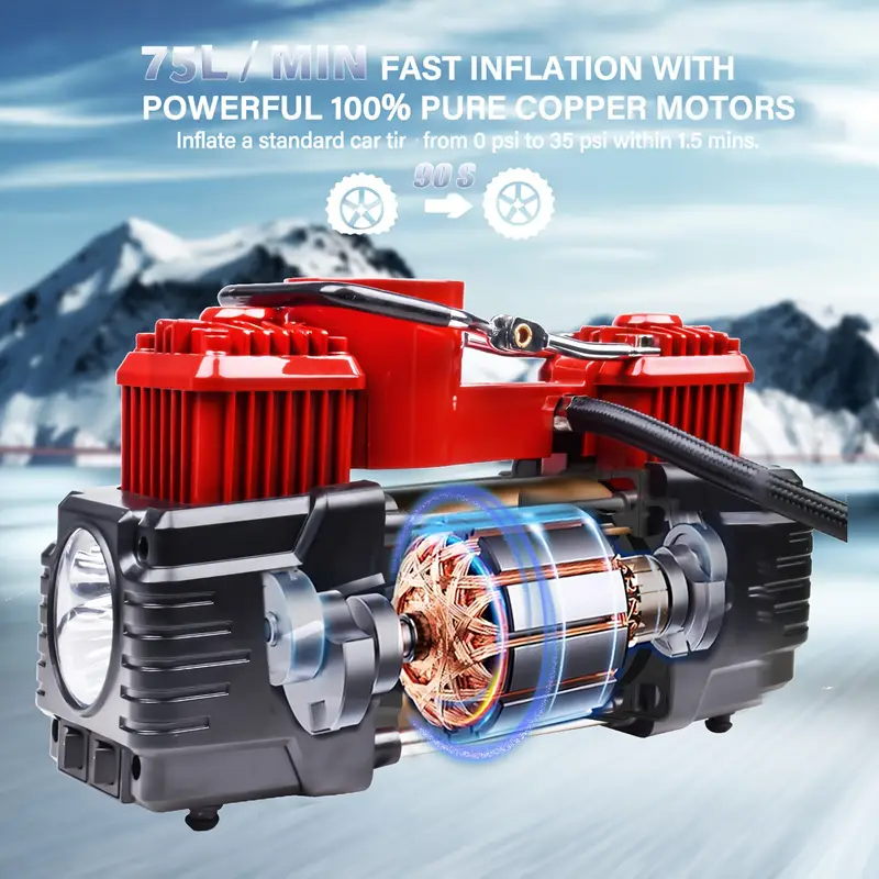 - Suitable for inflating car tires, bicycle tires, motorcycle tires, sports equipment, and inflatables.