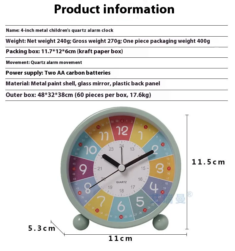 In New Zealand, where kids are encouraged to learn through playful and engaging tools, the Metal Cartoon Children's Early Education Alarm Clock fits perfectly into a child’s bedroom or study area. Whether it’s in a home in Auckland, Wellington, or Christchurch, this clock will provide both a valuable learning experience and a fun, interactive decor piece for your child.