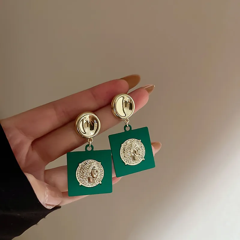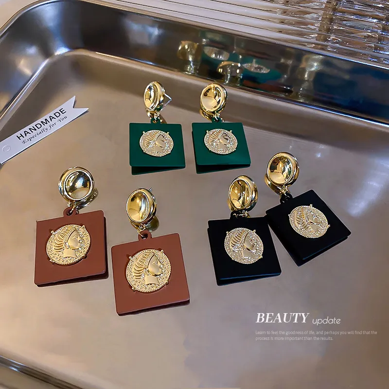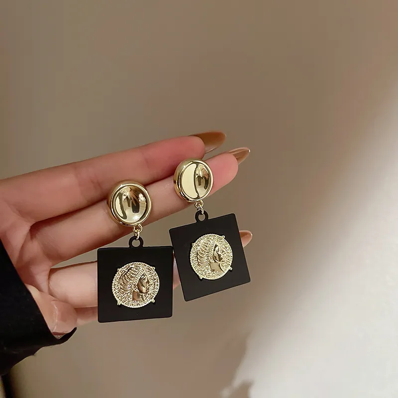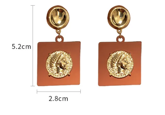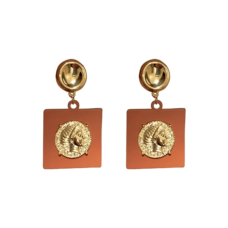 Metal Portrait Square Earrings Niche Ideas